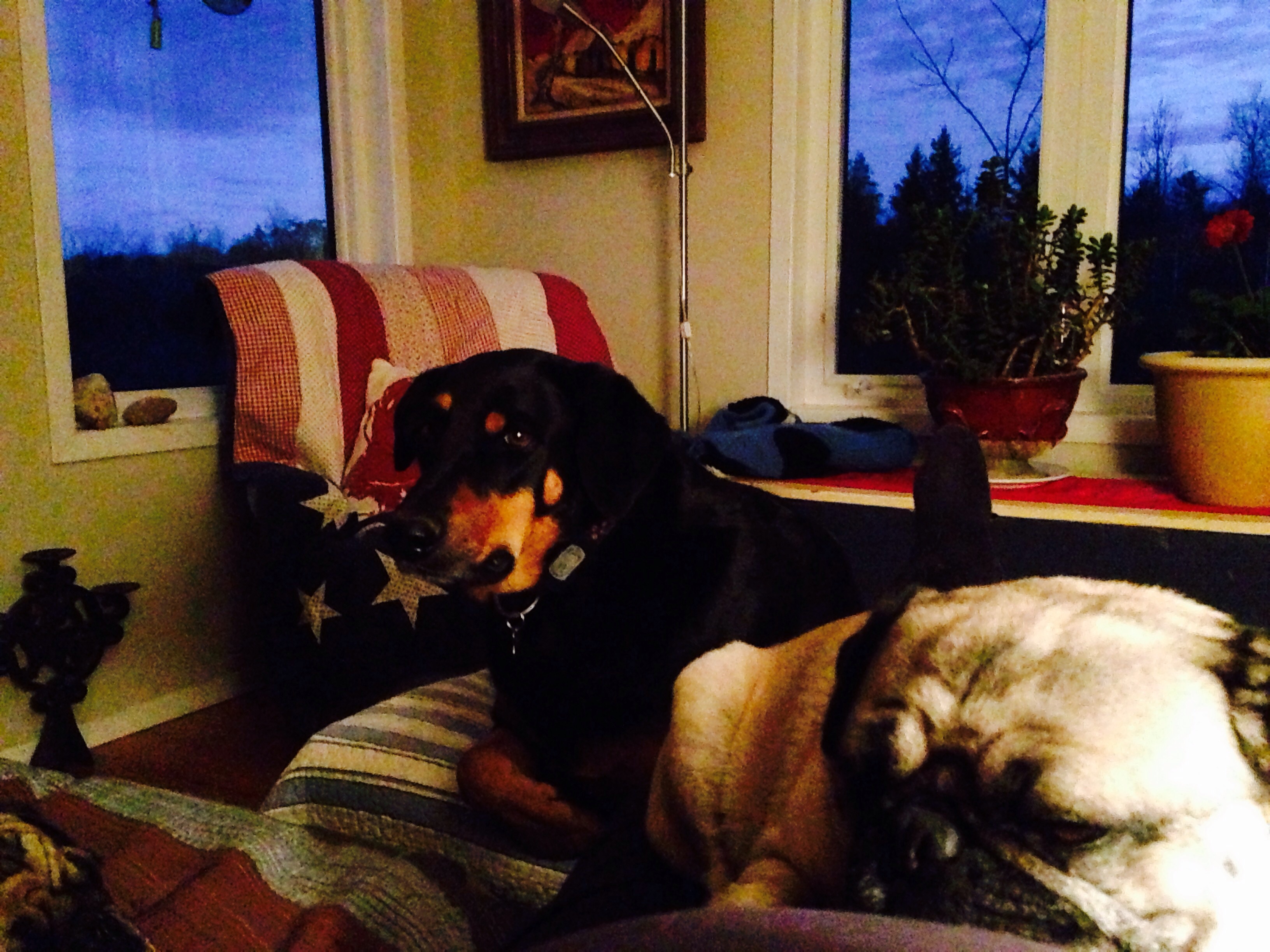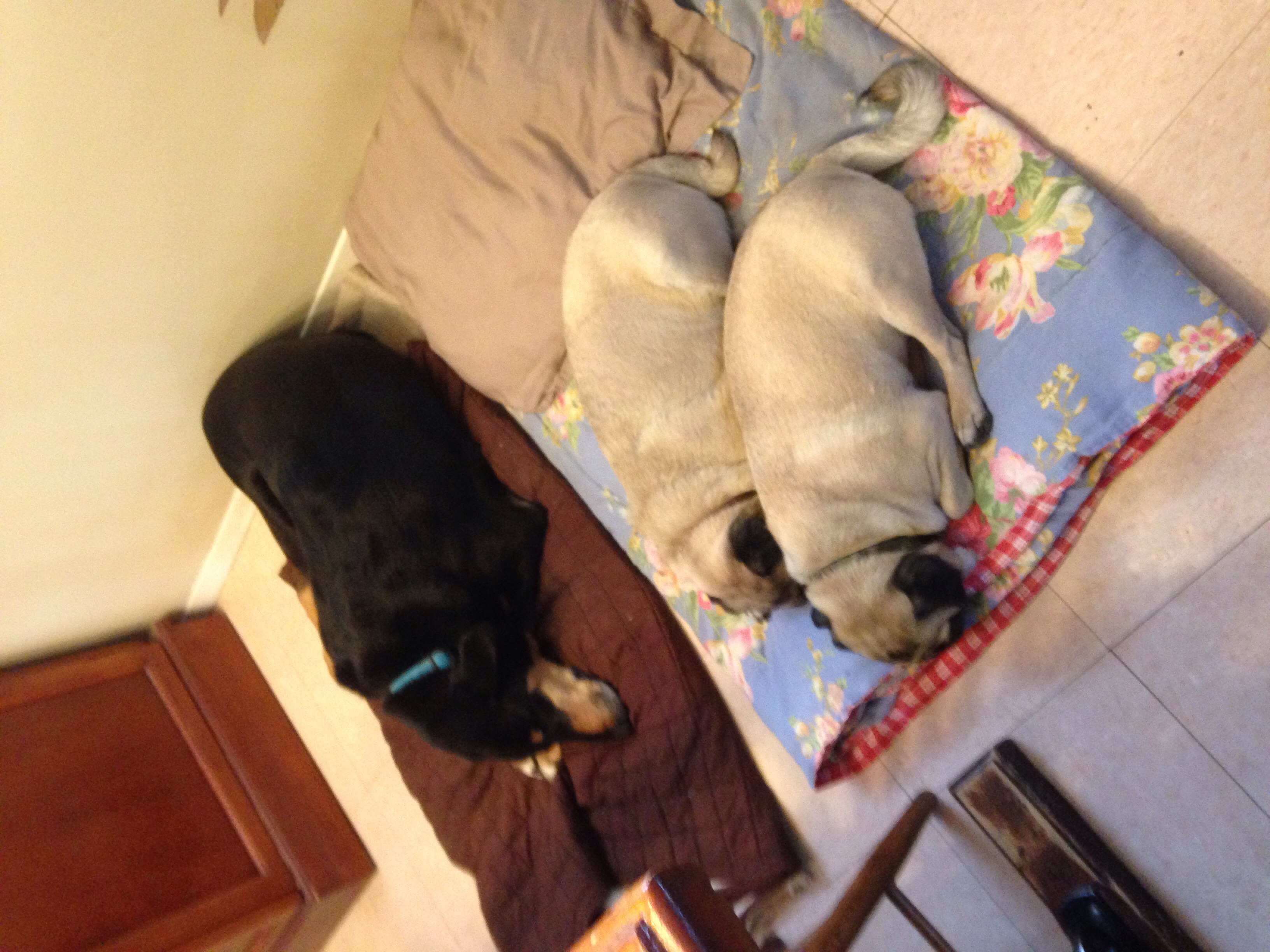 Duchess, doberman/lab mix, great with people but a dominant dog so our pugs and Baron don't like her. She could run all day, a real athlete. Both these dogs were great when we lived in town, easy to walk.