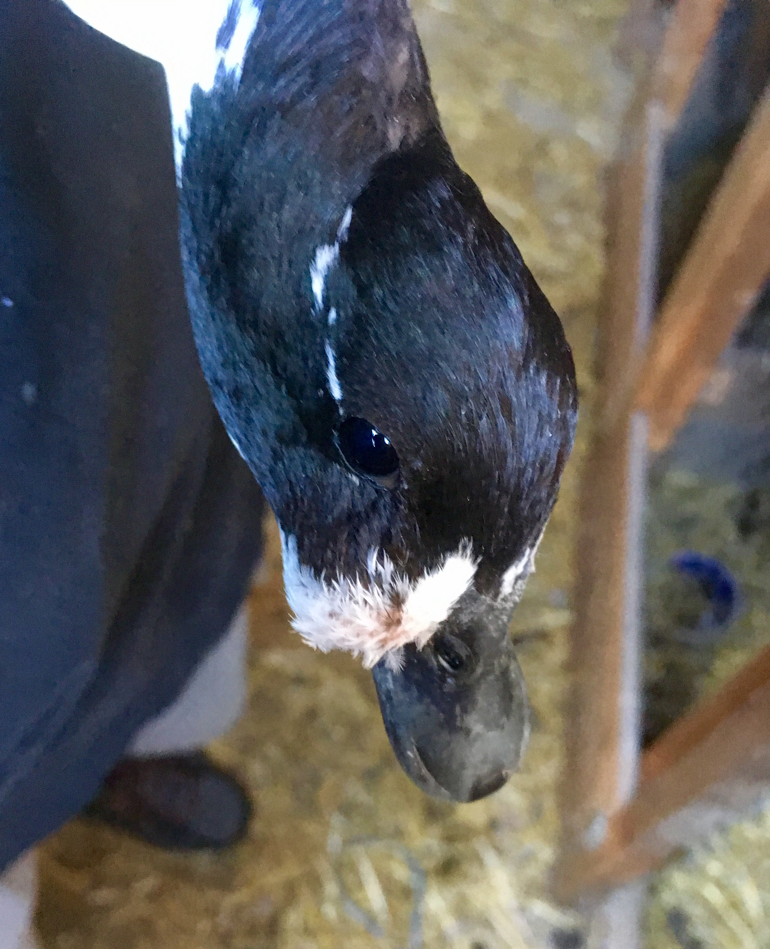 Oh the white duckling is a call duckling I hatched a few weeks ago. He is very happy to have other ducklings to live with now. haha.