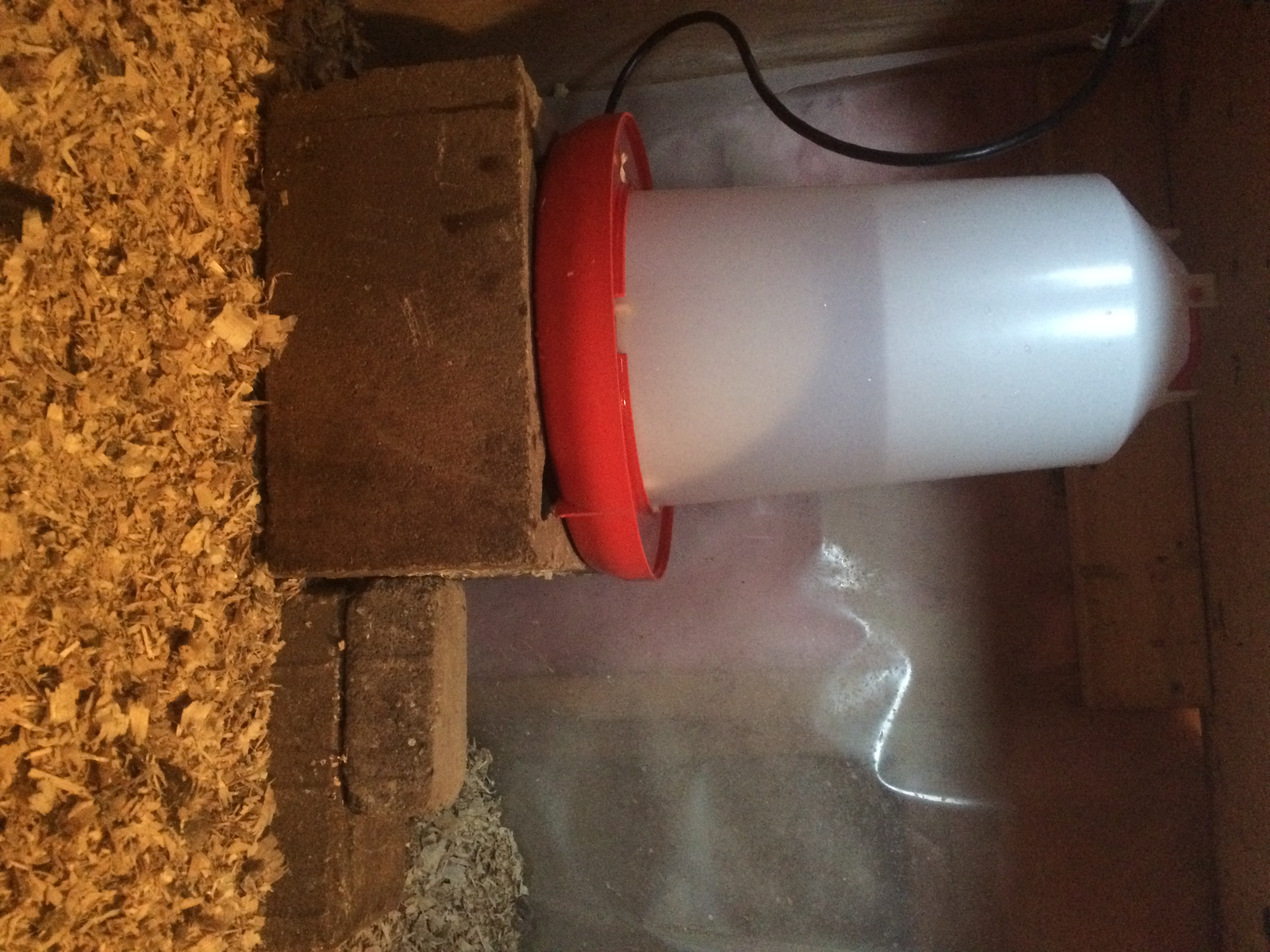 Will try to get one tomorrow but it's dark when I leave and dark when I get home. The waterer is on blocks. Raised maybe 6-8 inches off the floor. But there's a block on one side of it for my bantams to hop up on so that they can reach. Harley's wattles seem fine and no frostbite but he dribbles water all down his chest and it freezes. These Cochins are much higher maintenance than my rocks lol.