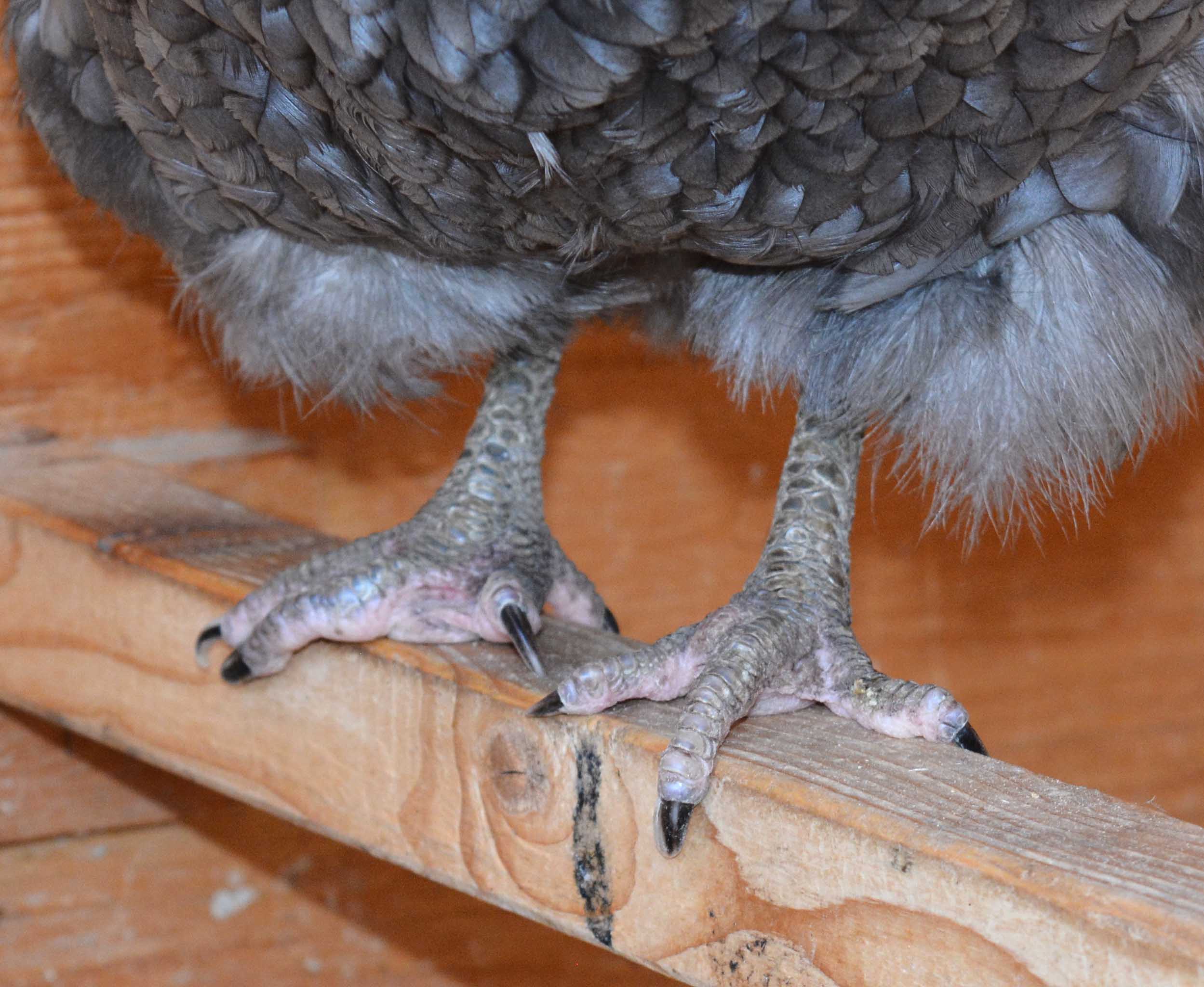 I am posting a pic of Little Missie. Her foot was seriously damaged in that dog attack 2 years ago with the middle toe being dislocated. We never managed to get it back and it's pretty much fused to the toe next to it. She scratches and gets about just fine and as you can see has no problem roosting.