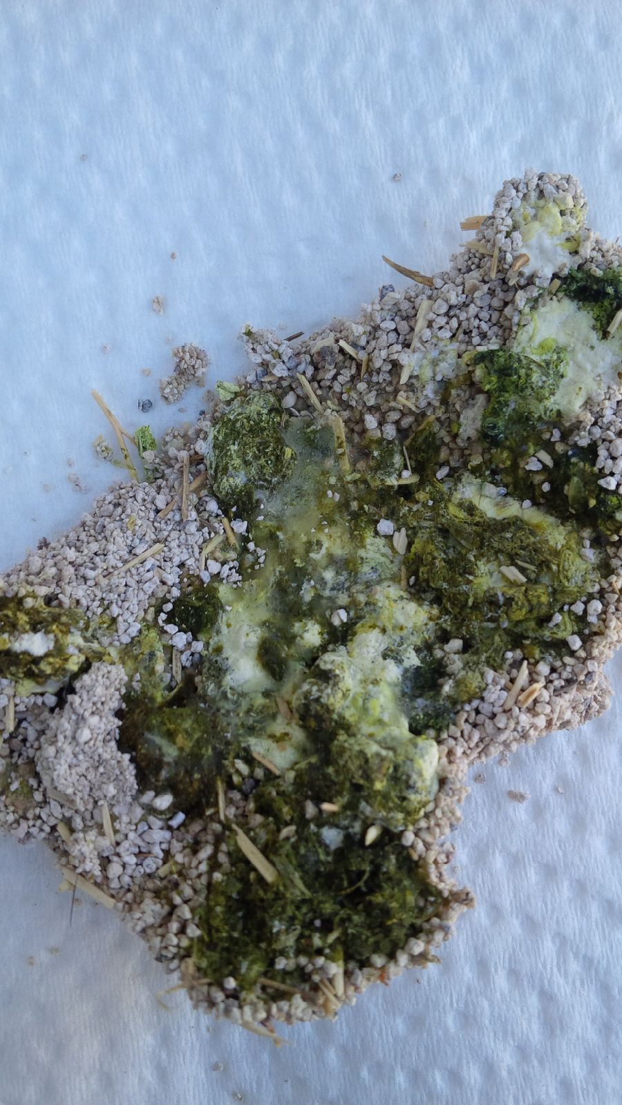 This morning I took a pic of her deposit on the poo board. I apologize that it's gross, but I'm hoping that you or someone elese will know what this is a result of. Bear in mind that this is frozen manure embedded in PDZ. When it first comes out, it's wet and slimy.