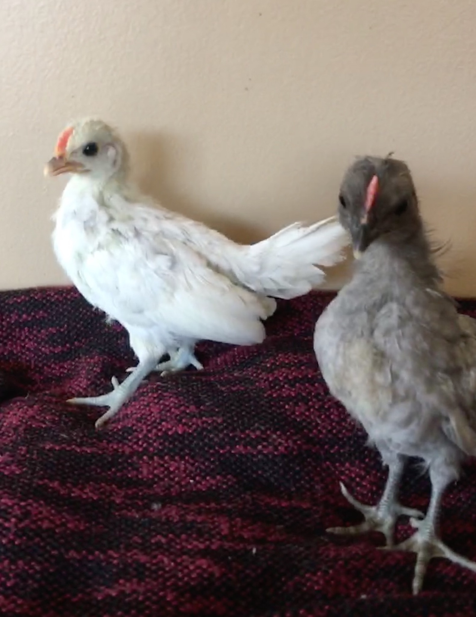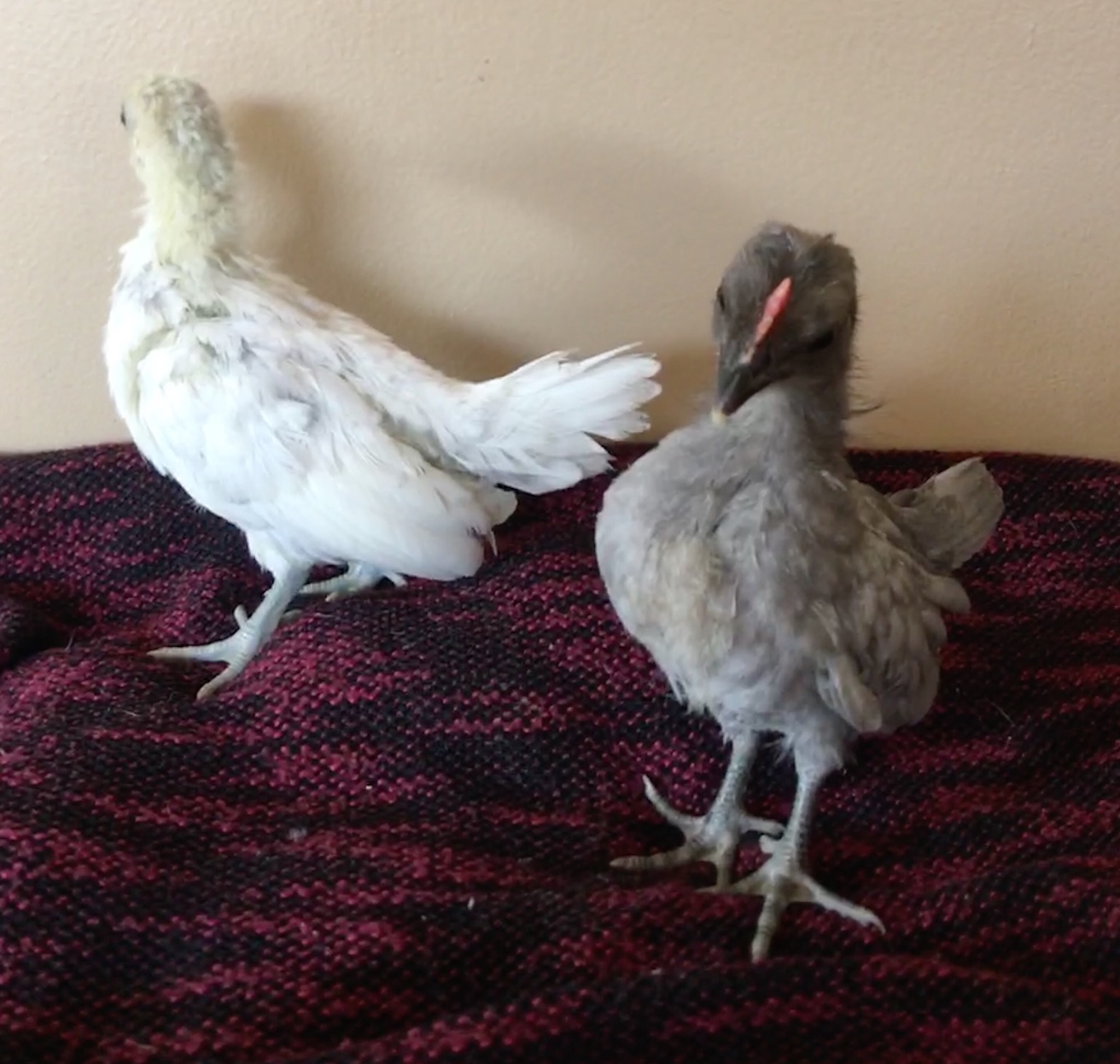 Oh my gosh they are so cute! What colour was their chick fluff do you remember? I'm asking because I have a black/dark grey oegb chick right now with a small cream chest fluff and I don't know if she will be blue or black (there was a blue hen and a solid black hen as possible mom's) I also have a cream coloured chick that just got a grey feather in each wing so wondering if she might be a splash. I love the mystery!