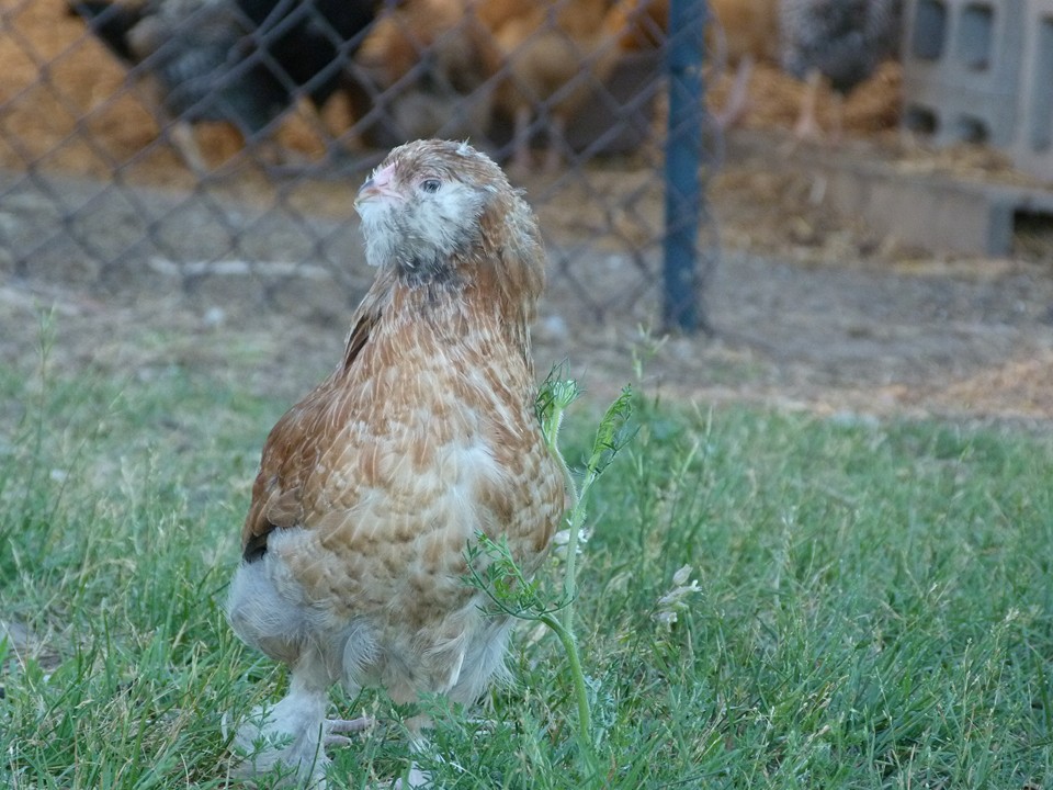 This breed is new to us this year--I got it for their winter hardy egg laying. They are pretty goofy. I believe 1 of our girls is Deaf--it is a commotion every morning when everyone flies out of the coop--and she is still sleeping in the corner like nothing has happened! The sleepy one with a likely hearing impairment is Garfield--the other girl is Odie. The girl in the pic is my daughter who is obsessed with #chickenselfies. In fairness, she does have her own summer company business which she posts them, but I am not sure everyone enjoys being in on the selfies! The faverolles are from Performance Poultry.