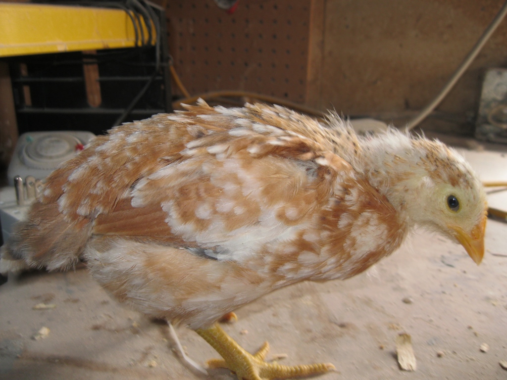 I hatched 8 Basque chicks June 3. 4 hatched from each breeding pen. One pen had a 3 year old rooster and a 4 year old hen, the other had a 4 year old rooster and three 11 month old pullets. Now that they are feathering out, I think I have several white ones, and several males. They are all mixed together so I don't know which ones are from which breeding. I may be able to tell later. They are 3 weeks old. I have a few more EO eggs in the incubator from the 3 year old rooster and the 4 year old hen, so if they hatch I will be able to see which ones from this hatch are theirs (maybe).