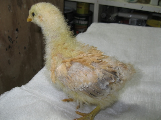 They will be 4 weeks old this weekend. I will take some more pictures then. I believe there was some discussion a few years ago on the Basque forum that the white EOs that people get in Canada are always male. I am pretty sure that 5 are males - sit on feeders, rush over to pick my fingers when I put my hand in, have fuller tails (tails are not all barred though), one has a darker comb.