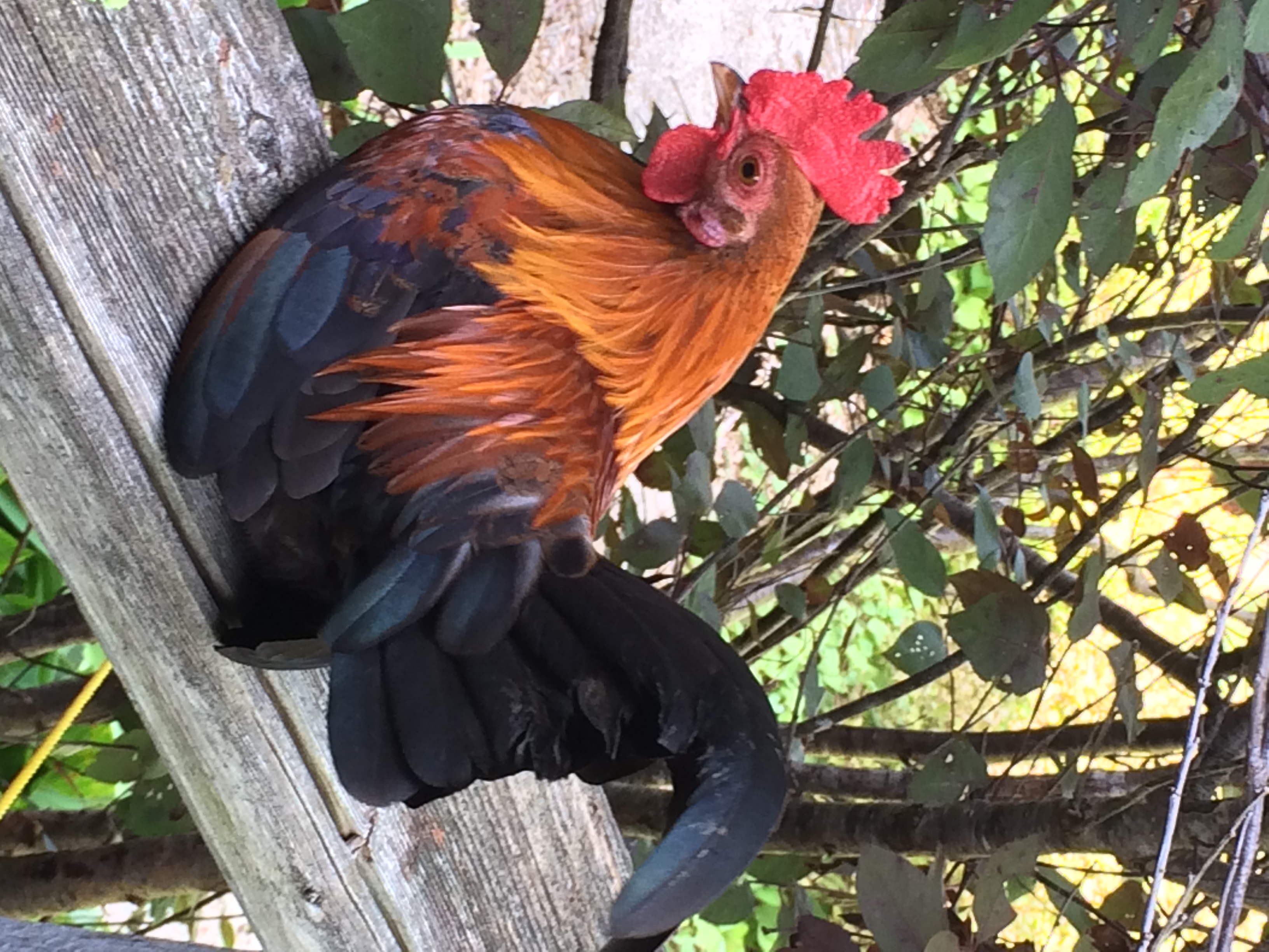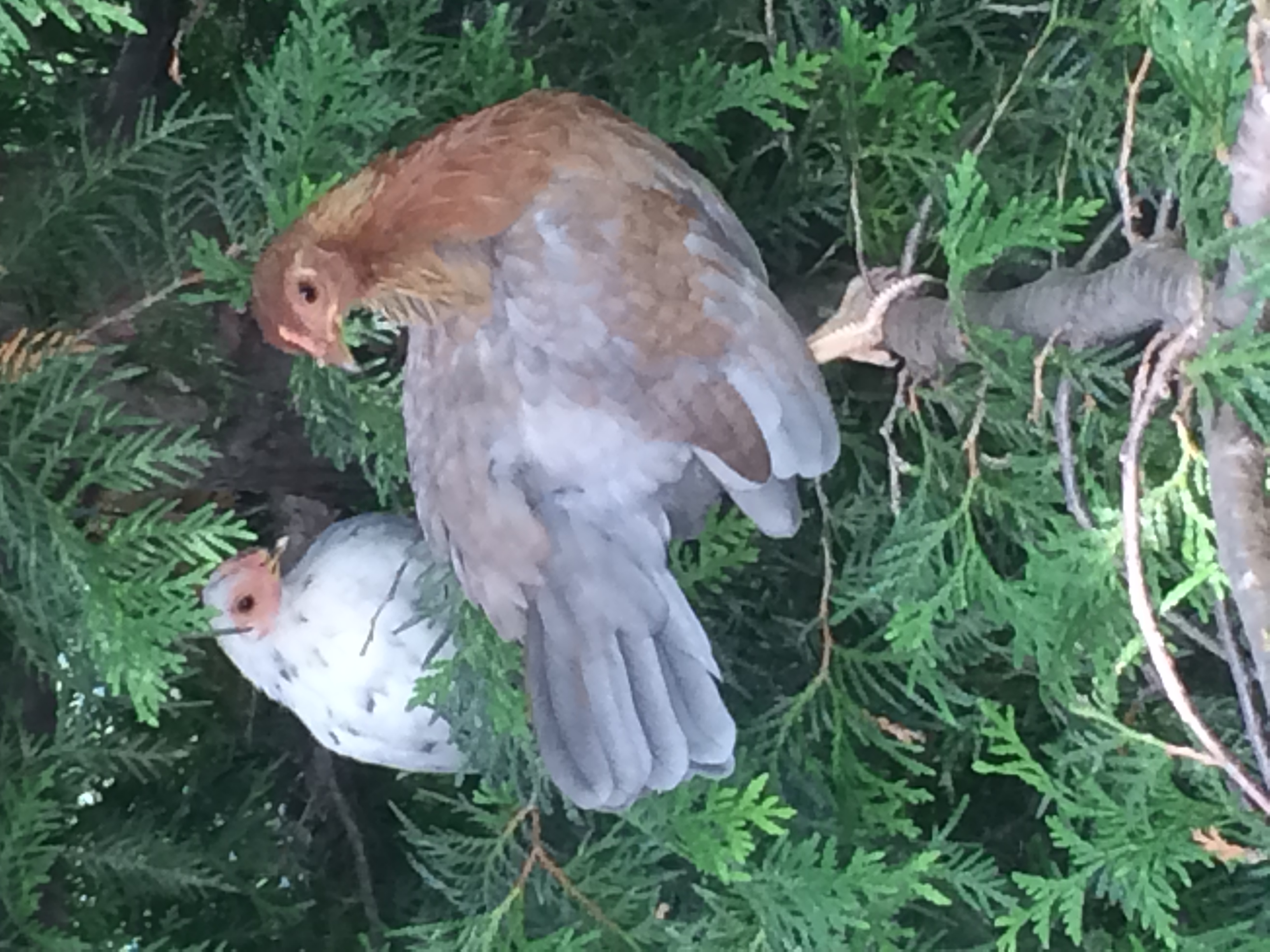That Cochin is actually a Cochin/rock cross. The only rock she has is a more streamlined body and that tail carriage lol. She was the clumsy chick with the leg problems from this spring. She fully believes she's a tiny bantam and she sleeps in the rafters with these guys.