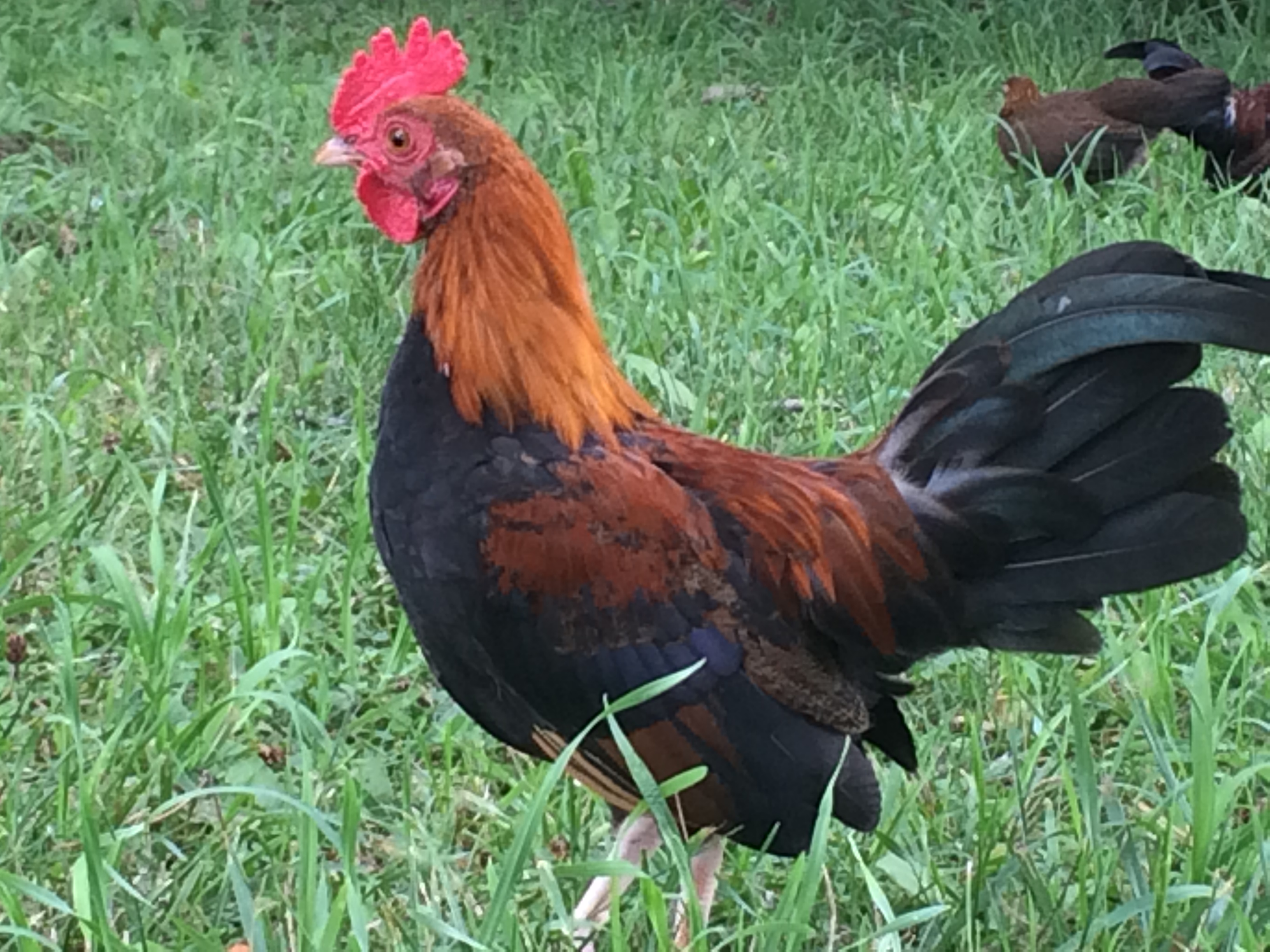 His hackles glow they are so orange. His markings are like Black breasted red (which is what I’d call his brother) but his colour is much different.