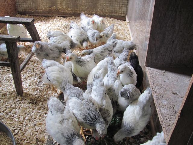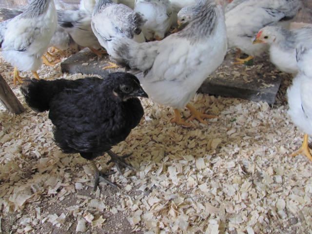 I think it looks approximately 60/40 boys to girls? And yeah, it's more obvious than ever that the black one isn't a Wyandotte. I'm so sad about that, when I first saw the black one pop up, before I paid attention to type, I had a moment of glee. Black standard Wyandottes are so few and far between, and you could do so much with just one misbred black...