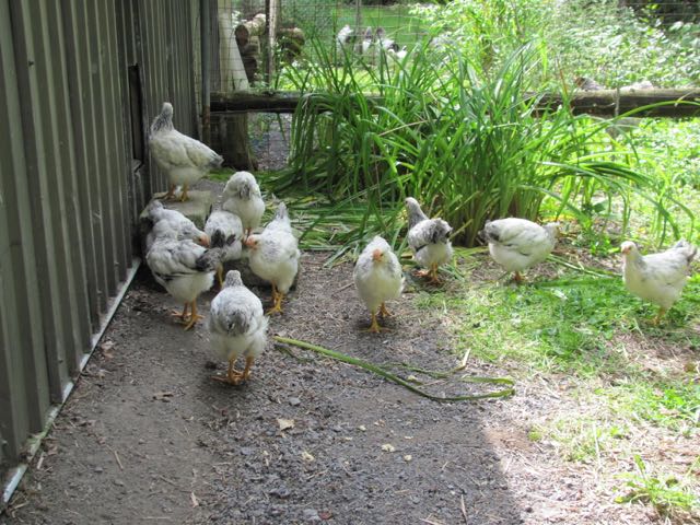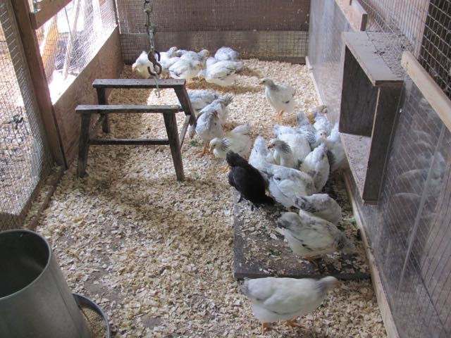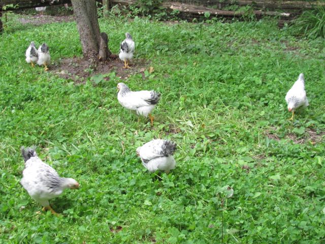 Here are my "Beauties" at 4 weeks, bright and bushy tailed, will leave the brooder sometime this week, so hopefully I will be able to get some close up's then