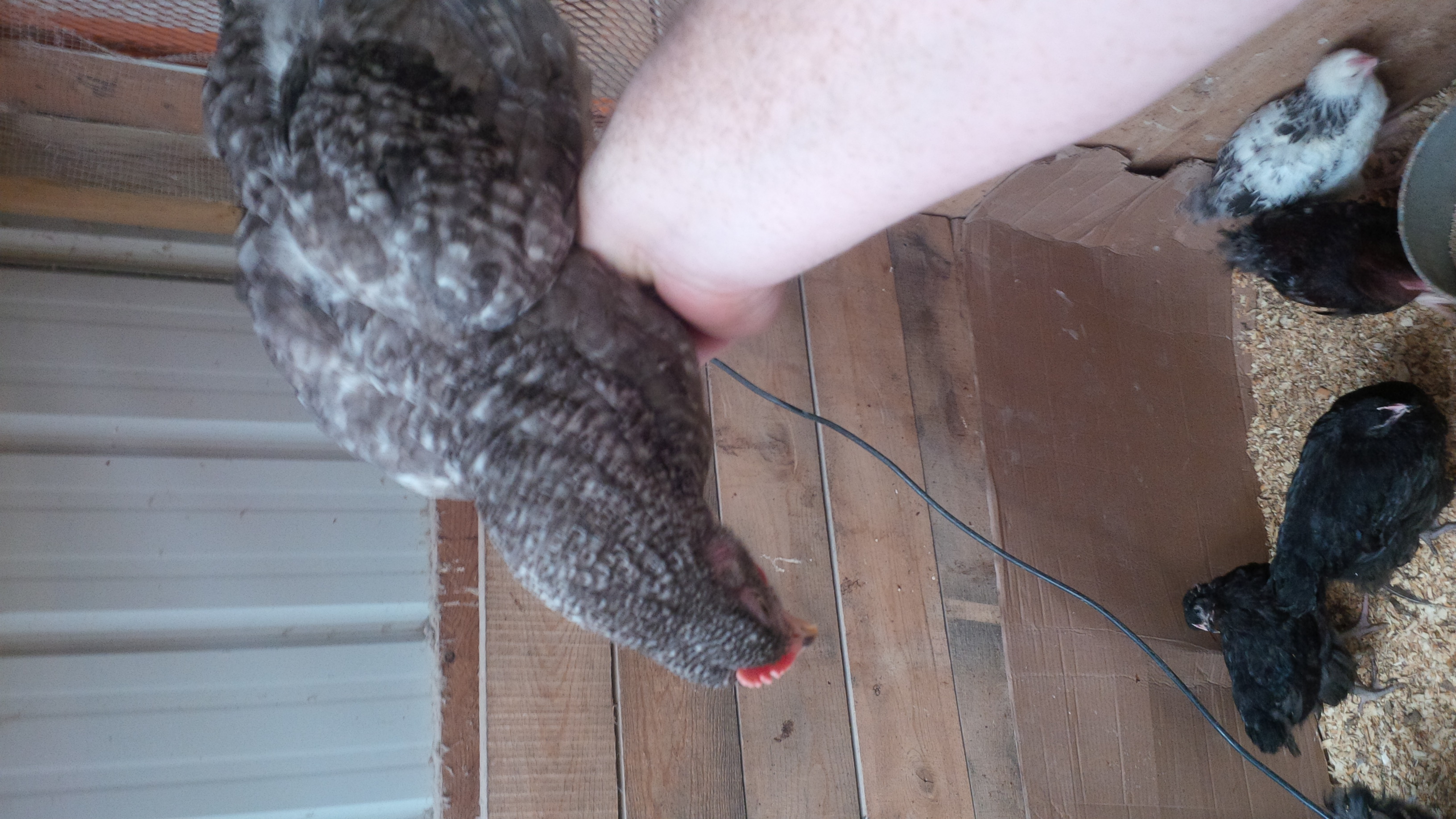 The second generation I use a blue barred male (one barred gene) on the solid black females. and i also bred a columbian rock to the blue barred females and back to the single combed wyandottes. The males from the Columbian on blue wyandottes have red in their shoulder I probably won't use any of them.