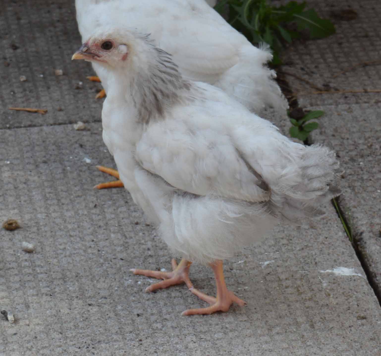 Interesting question. All chicks are sire Chunky and dams Kibbles and Bits. Parents are blue Columbian wyandottes. In this batch 5 have good yellow legs but one of the blue Columbian ?pullets has pink legs. In batch 2 all 12 have yellow legs. Wyandottes should have yellow legs so where did this pink show up from? You can see the yellow in the chick behind. It's more pronounced than it looks.