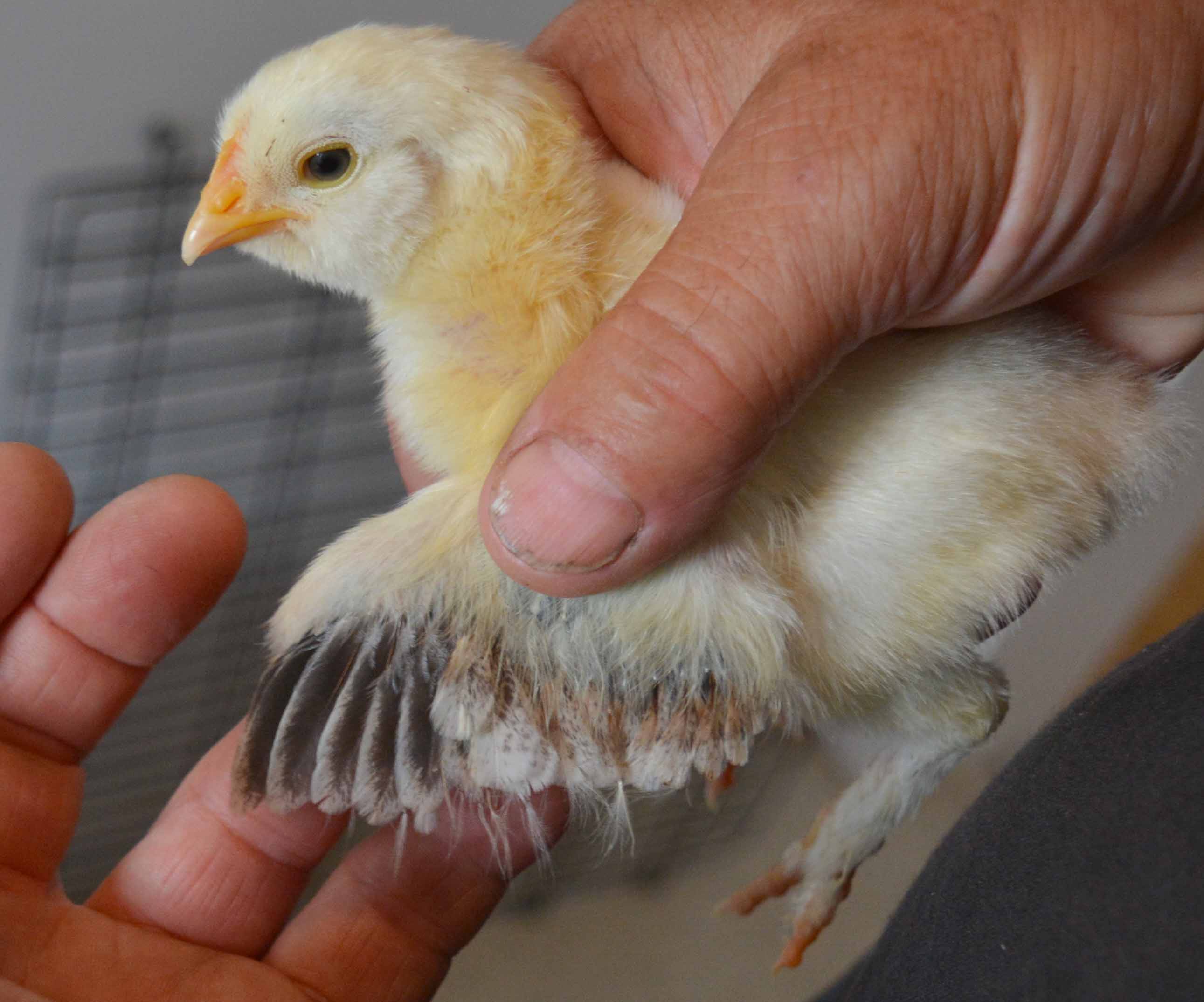 So here are the wing pics of 10 day old salmon faverolles chicks.