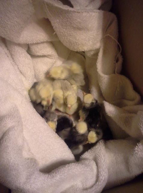 10 going to the brooder!!! may still get a couple more.... the one with issues from yesterday still in there, still got a dryed clump-- NO TOUCHING
