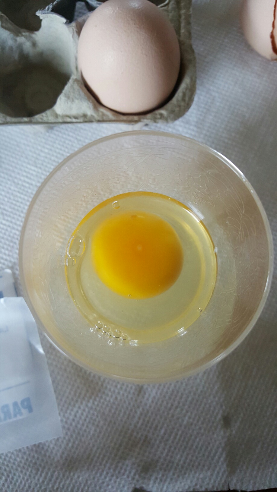 then took egg 1 and chipped it open, broke it into the el cheapo wine glass and .....well....um.....hm....not fertilized.