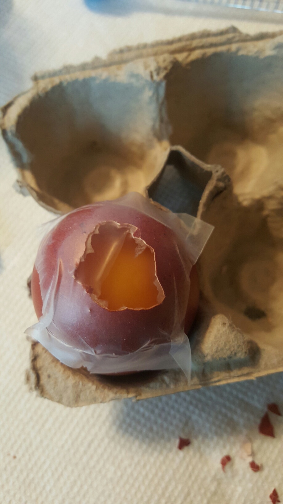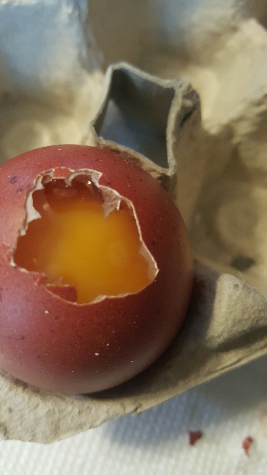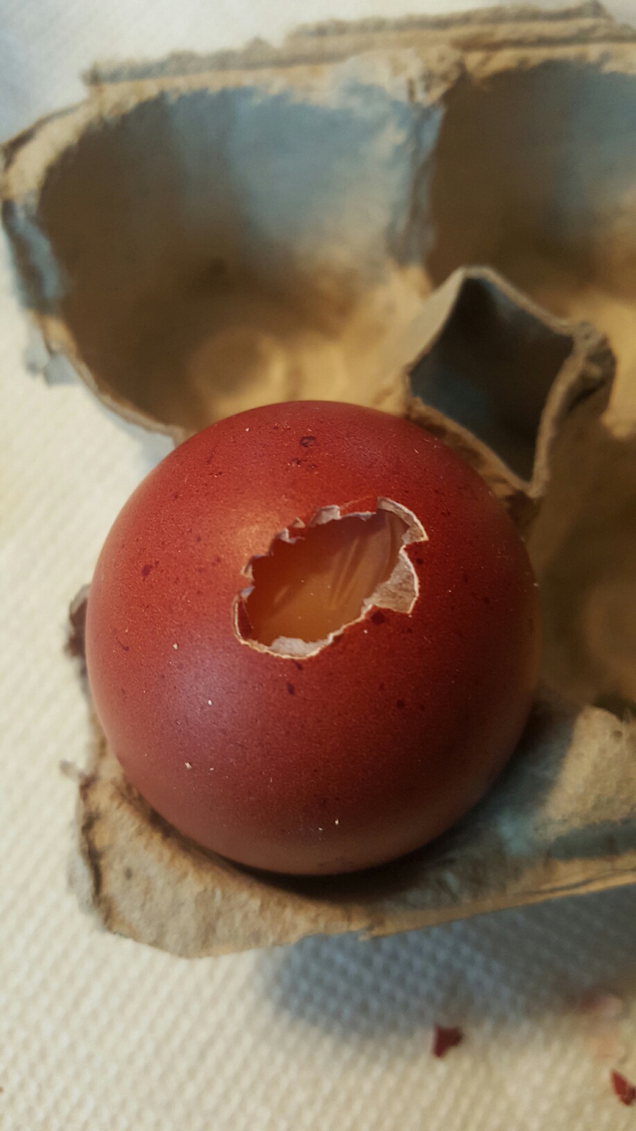and went a got one of my black tailed buff marans eggs (i KNOW that boy is doing his job!) and chipped a hole carefully in the top