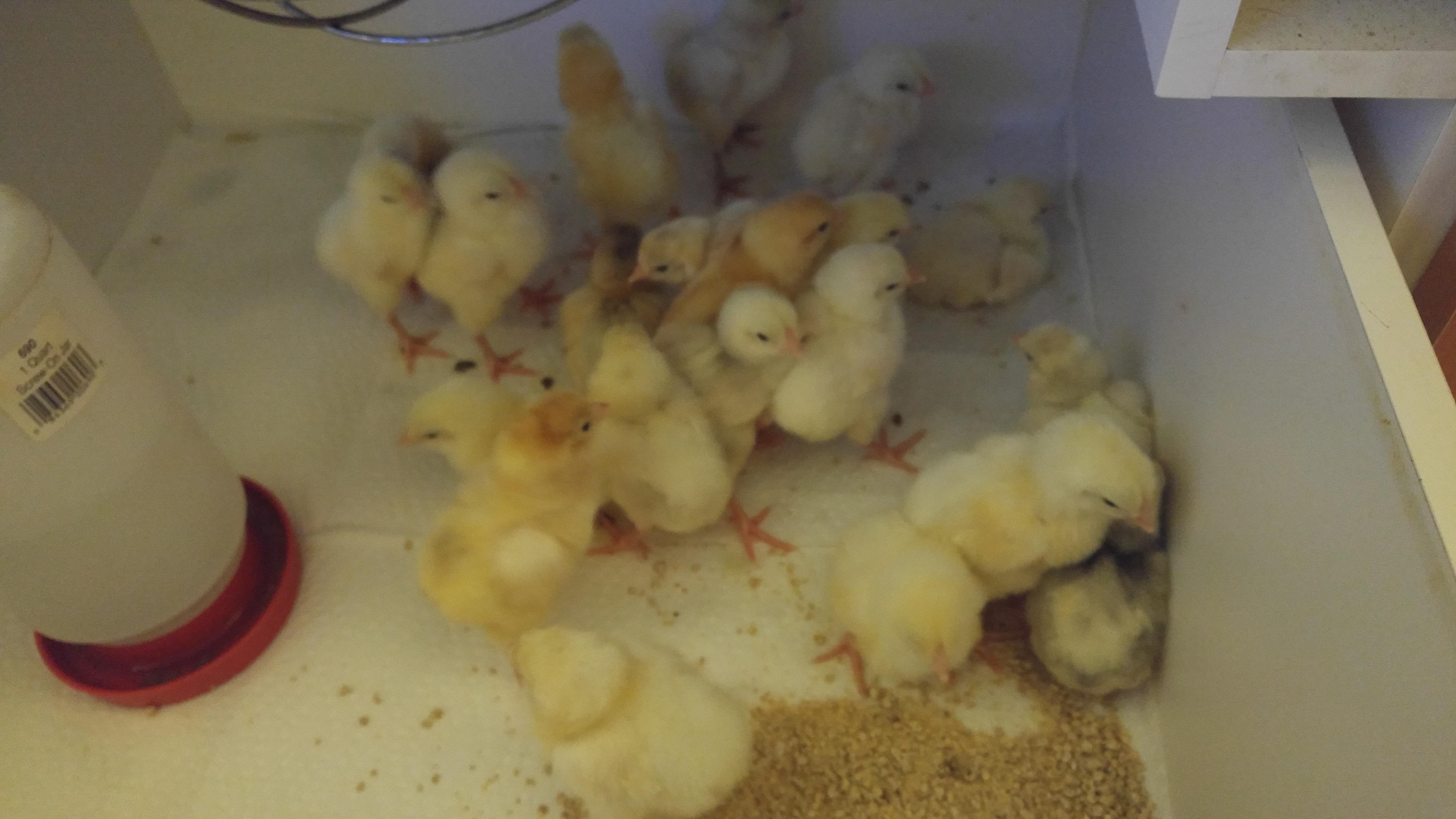 First hatch out. The little buggers slipped in and out of thier hatching baskets so now I don't know who is who. Very disappointing, but it is what it is I guess. I have an old display cabinet from Canadian Tire that I converted to an incubation station. One drawer is for supplies and the other is for chicks. Incubator sits on top as well as a spot for the eggs waiting to go in. The drawer is well ventilated and works even better then I thought it would. Next hatch is a few days away. Anyone looking for Chantecler chicks give me a holler.