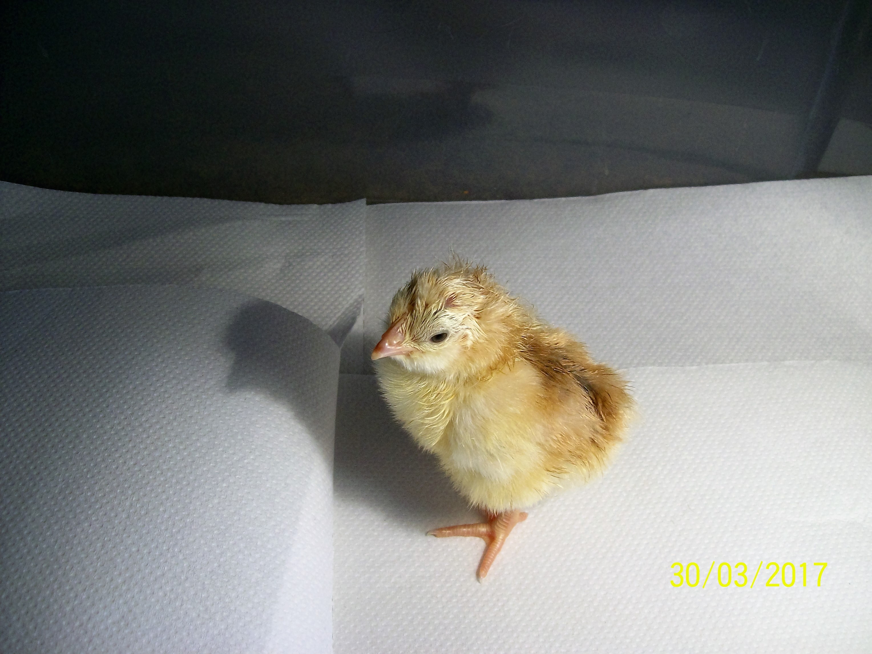 O.K. here are a few pics of my very first Jubilee Orpington chick who pipped and hatched in less than an hour yesterday at 3p.m.
