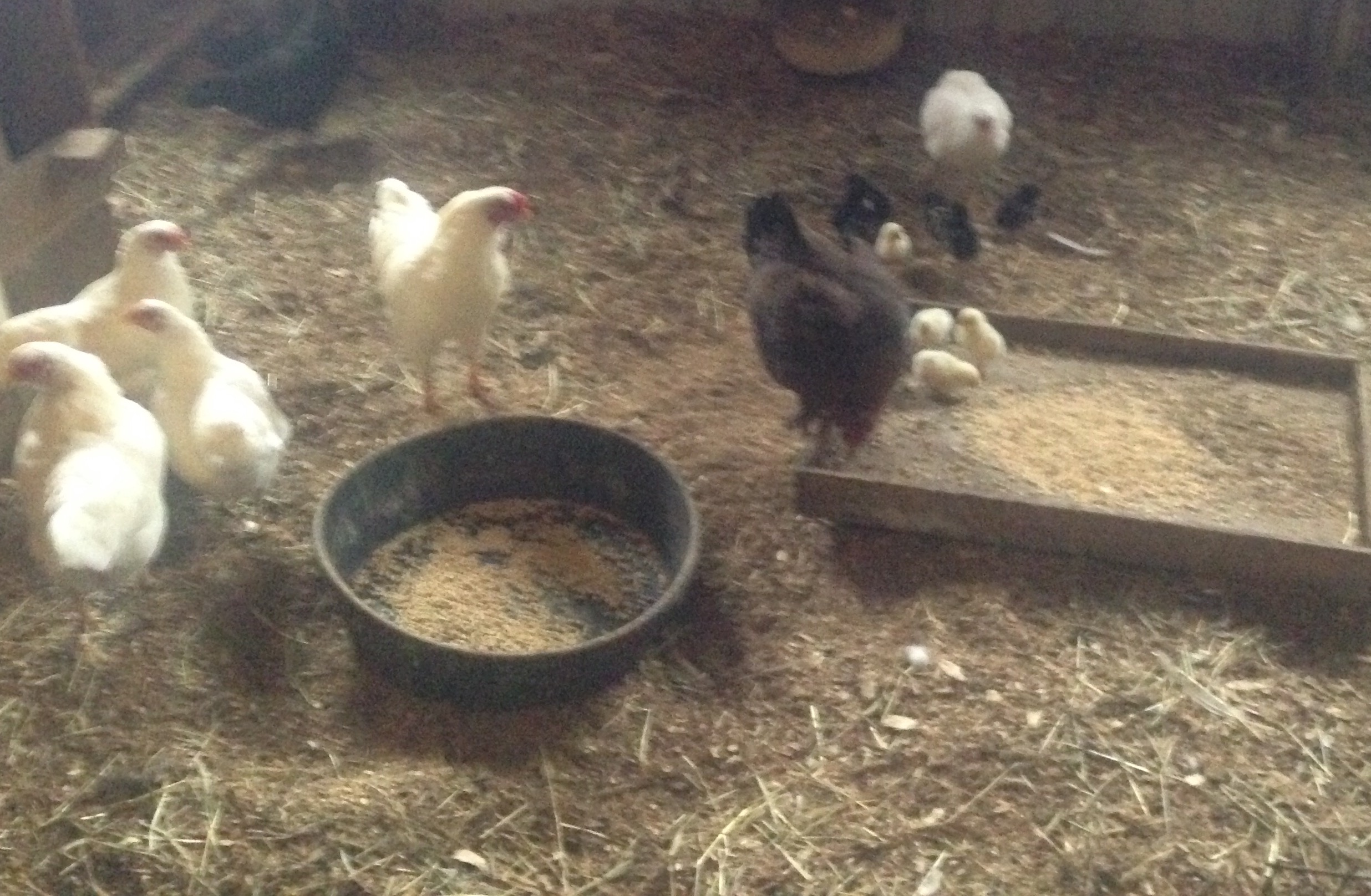 Still going strong . Time to separate blk from whites tomorrow. Blks to free roam with brown hen , whites to stay with chanty banty in pen for awhile yet .