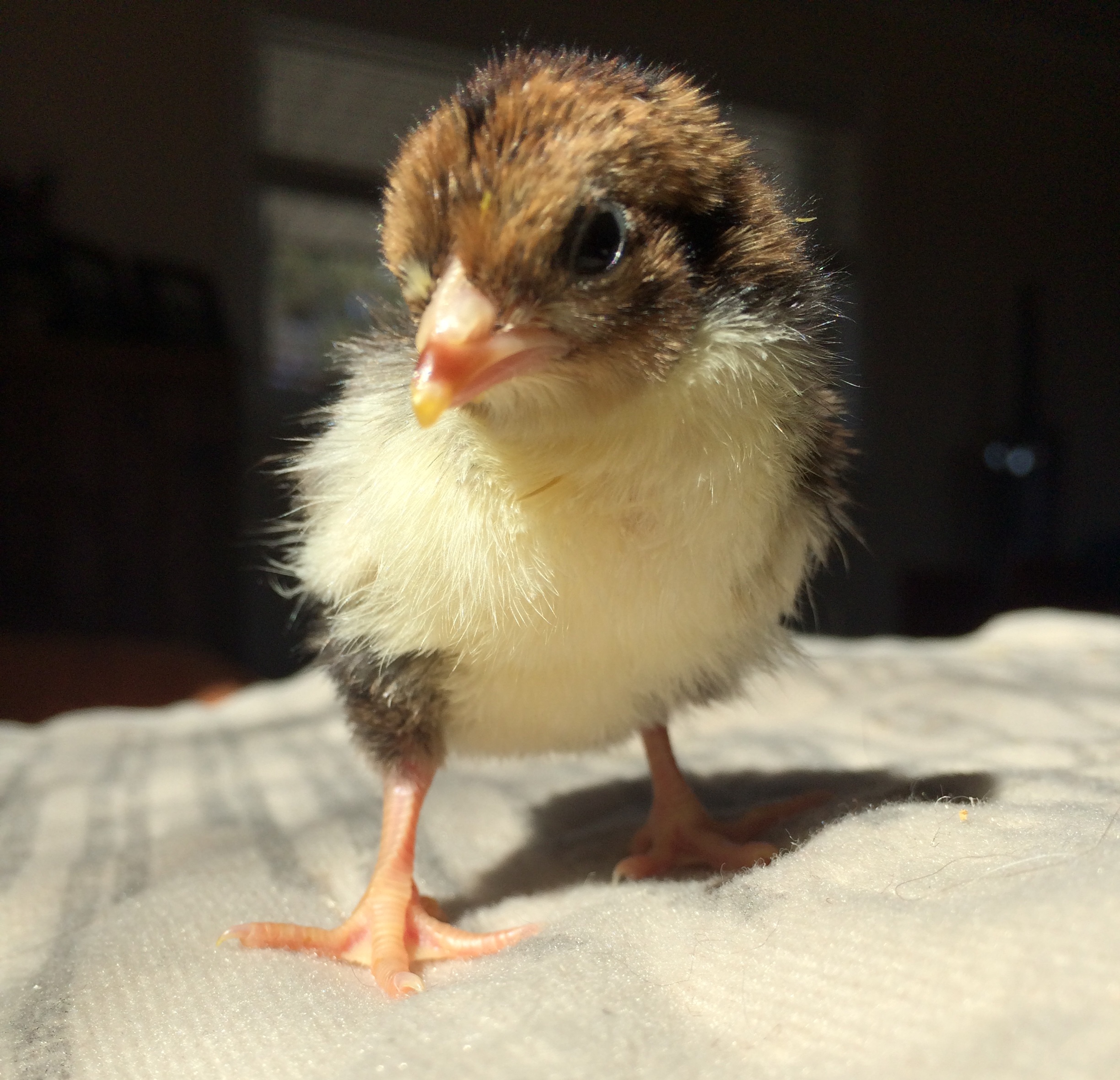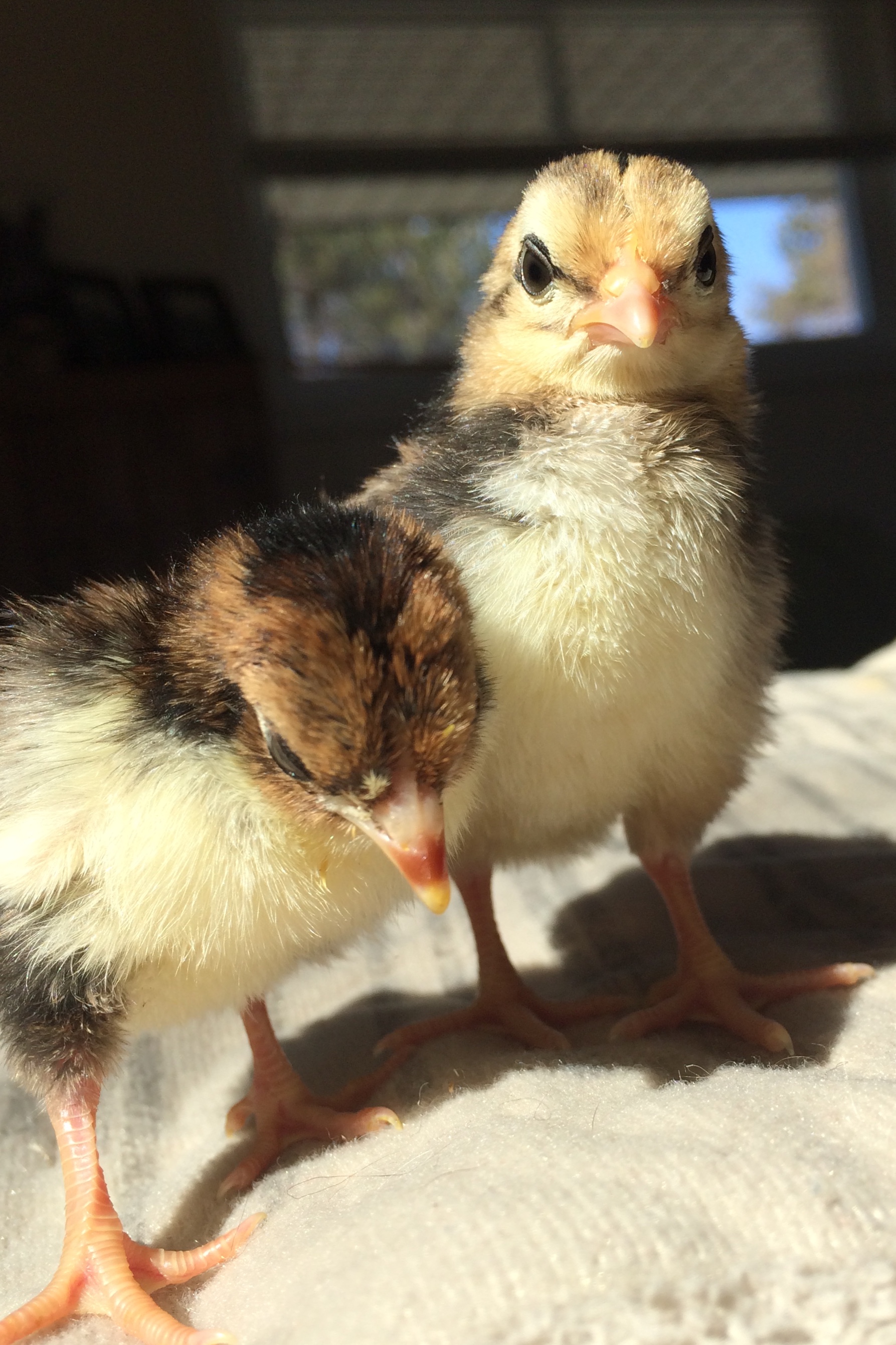 Well the little fella didn't make it. He refused to eat. So the wee girl is the lone bantam with two Cochin chicks three times her size but she's the boss. She's even trying to boss around the big chicks 3 weeks older. This is why I love oegbs.