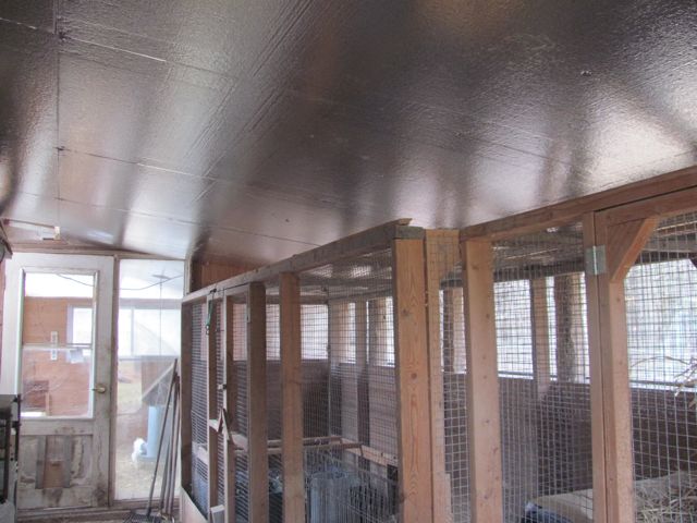 So when we built this coop we put in ceiling that is both insulation and very smooth to discourage cobwebs.