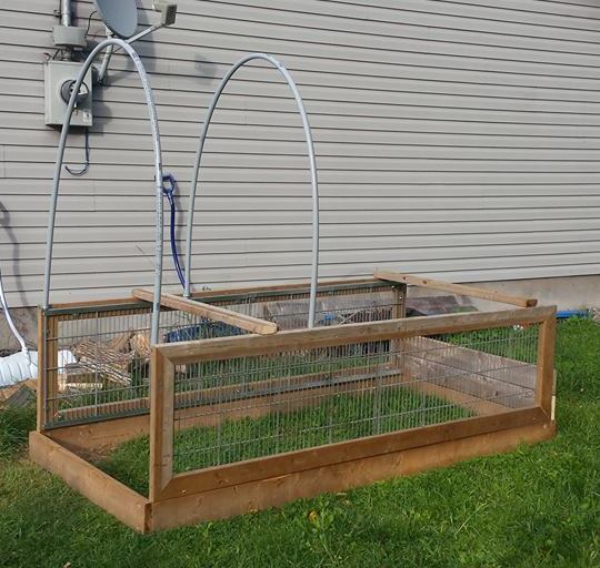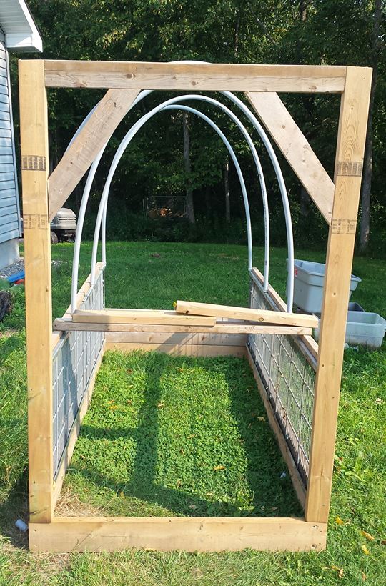 Well I scrapped my plans on building a bunch of the 4 ft x 4 ft coops with the sunroofs, just too time consuming, so have decided to go back to something simpler, an updated hoop house. The first ones I am building a just 4 feet by 8 feet, but will be just over 6 feet tall so I can stand up in them. The sides are made with the galvanized metal shelves I have and 2x4 frame, I will also cover with 1\2" hardware cloth to keep small pests out as well.
