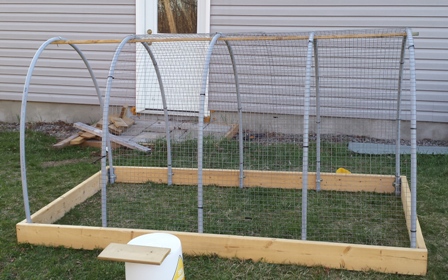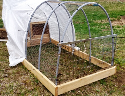 Both of these are not pretty and are for short term use. When I have more time in the summer I we build better ones but similar design. The main thing is I would like to find something more permanent/durable to replace the tarp, something metal or thin pliable rigid plastic?