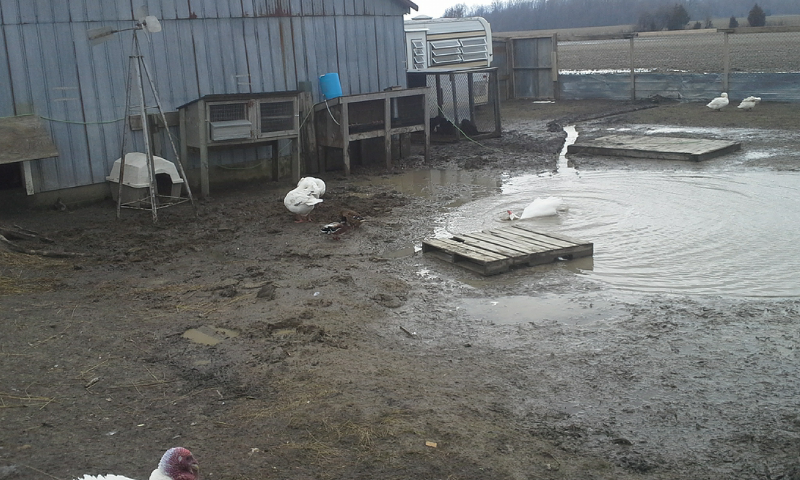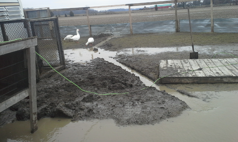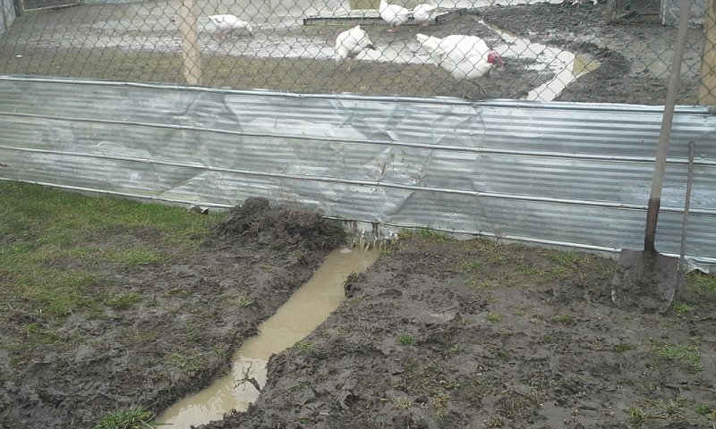 well I solved my drainage issues in front of the coop, and under the rv coop by punching a bunch of holes in the metal skirt and digging a bunch of trenches the last heavy rain fall.