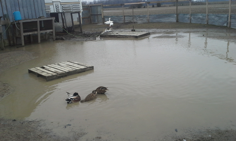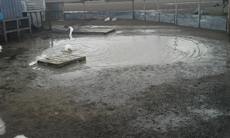 Today I dug even more trenches and levelled out some of the ground filling in some of the puddles in front of the bird door and under one of the quail hutches.