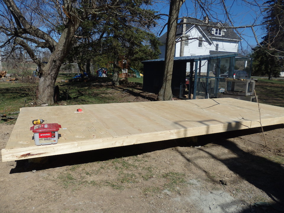 Progress! Has to be done by next weekend. I have the back wall framed, three more to go.
