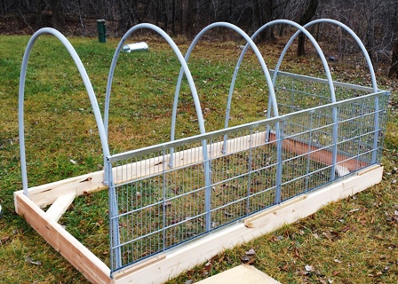 They will just be simple hoop houses covered with 1"x1" welded wire and plywood ends. Just have to decide on nestbox design and feeders and waterers. I will cover the top with a tarp for weather protection.