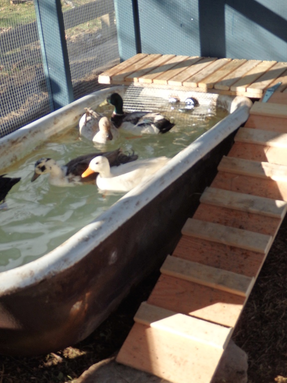 It was one we had at the barn for years...we plugged the holes for the taps and overflow, put a drain kit in it and ran an ABS pipe under ground...once a week in the summer I pull the plug let the tub drain and fill 'er back up again.SandyM wrote:Omg!! I love the bath tub for the ducks! Stealing!!!!