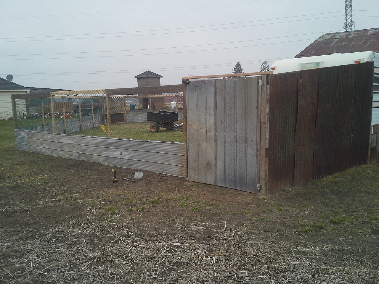 subdivide 2 pens off the front of the trailer coop out as far as the coop. 22x22 and 12 x22.