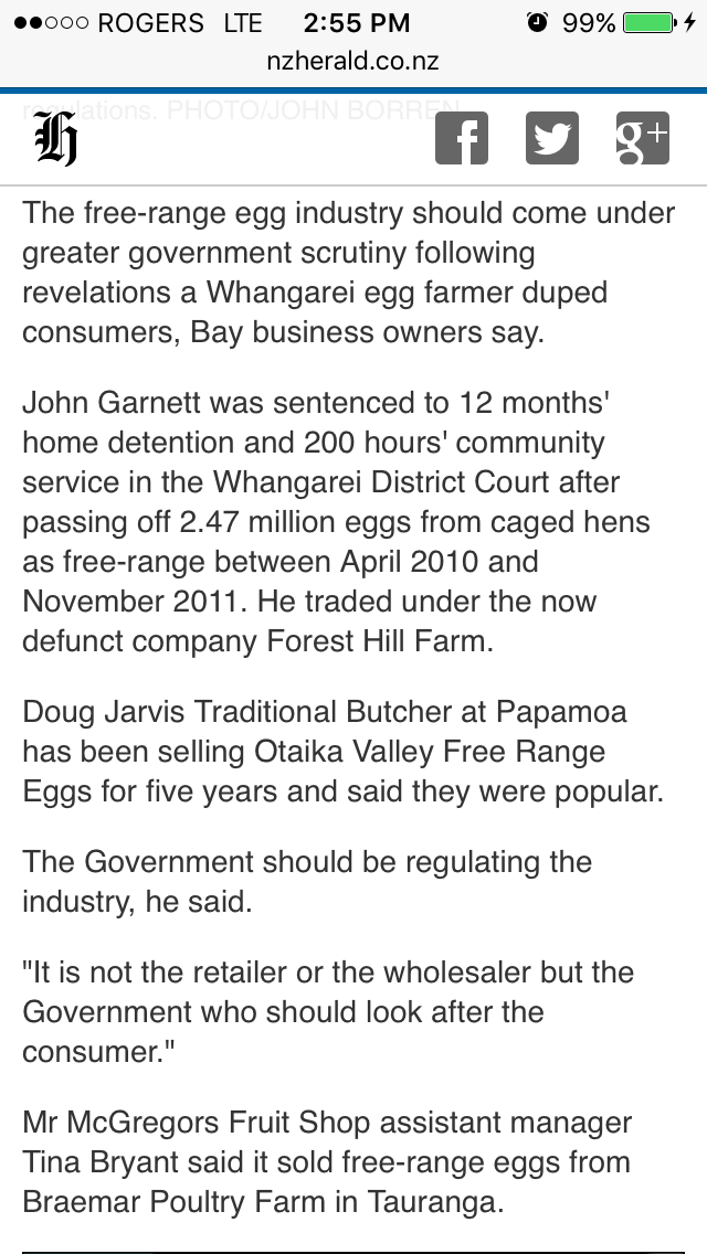 One small farmer on southern Ontario has 10,000 chickens and has had em 40 years, but now he MUST ship his eggs away for grading (weighed for size for packaging) and the eggs he gets back ARE NOT THE ONES HE SENT OUT! He tried fighting them but he's too small and near retirement. (Article in The Landowner)