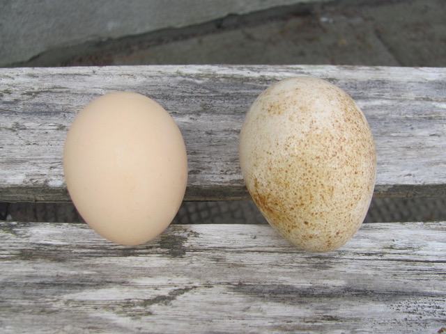 Egg on left is a Wyandotte egg, egg on right is a mystery Egg