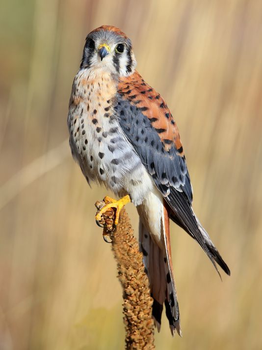 Hot darn! I've never heard of an American kestrel until now! ...body size from a blue jay to mourning dove...