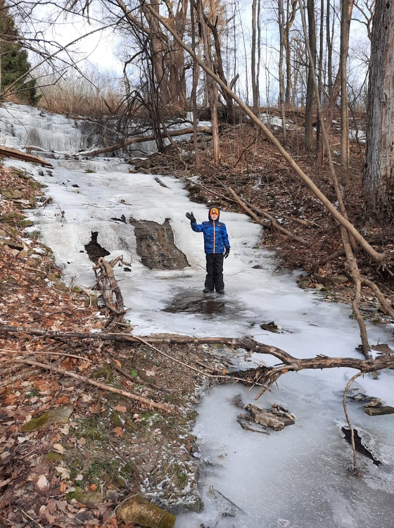 Good day!! Its another cold one, but sunny like yesterday! NO wind. Or not as strong. Took the kids to the waterfall today, and a couple days ago. So much fun. There WAS water running that we could see a few days ago, but most of the water was solid on top, but you could still hear it underneath.