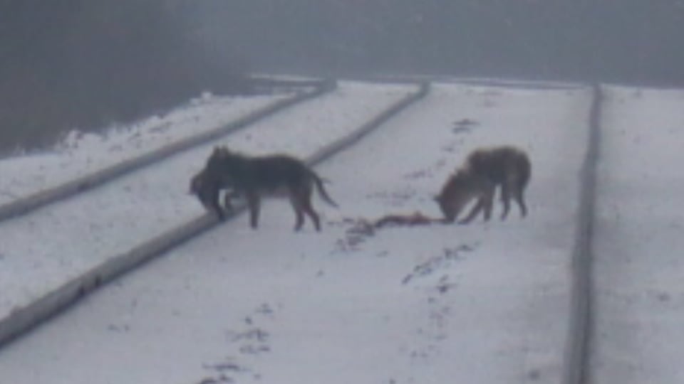 Son Dave took some pictures with his camera Dec. 24th... one is not very clear.... but a deer got smucked on the tracks.. and 2 coyotes were cleaning it up. The other is of the birdfeeder in the bush I fill occasionally for the birds, and they love it!! They will eat out of your hand now.