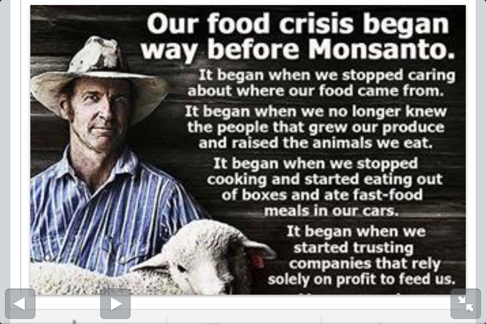 Its a very political topic and I could go on and on because I am very, very opinionated with this topic. I have a friend who is a cash crop farmer. He works 3 jobs to support his toxic farming practice. Soy and corn. Feeds for animals and the cancer ridden North American diet. He will tell you everything that is wrong. He will tell you when he sprays the fields he won't do it on windy days and won't let his family or pets outside. Wrong is wrong. He is stuck. That is wrong; that he is stuck. It takes too much money to dig out of where he is. The government and seed companies own him. There is so much wrong one simply can not put it here, in one thread.