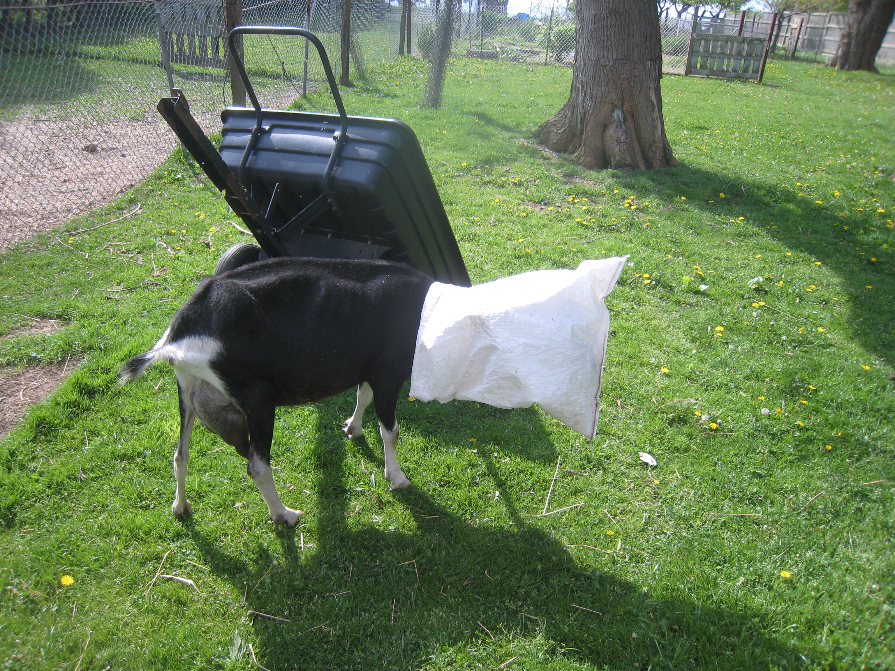 We used to put a bucket on a sheep’s head to keep it from going anywhere, they never did seem to figure out how to get it off!!