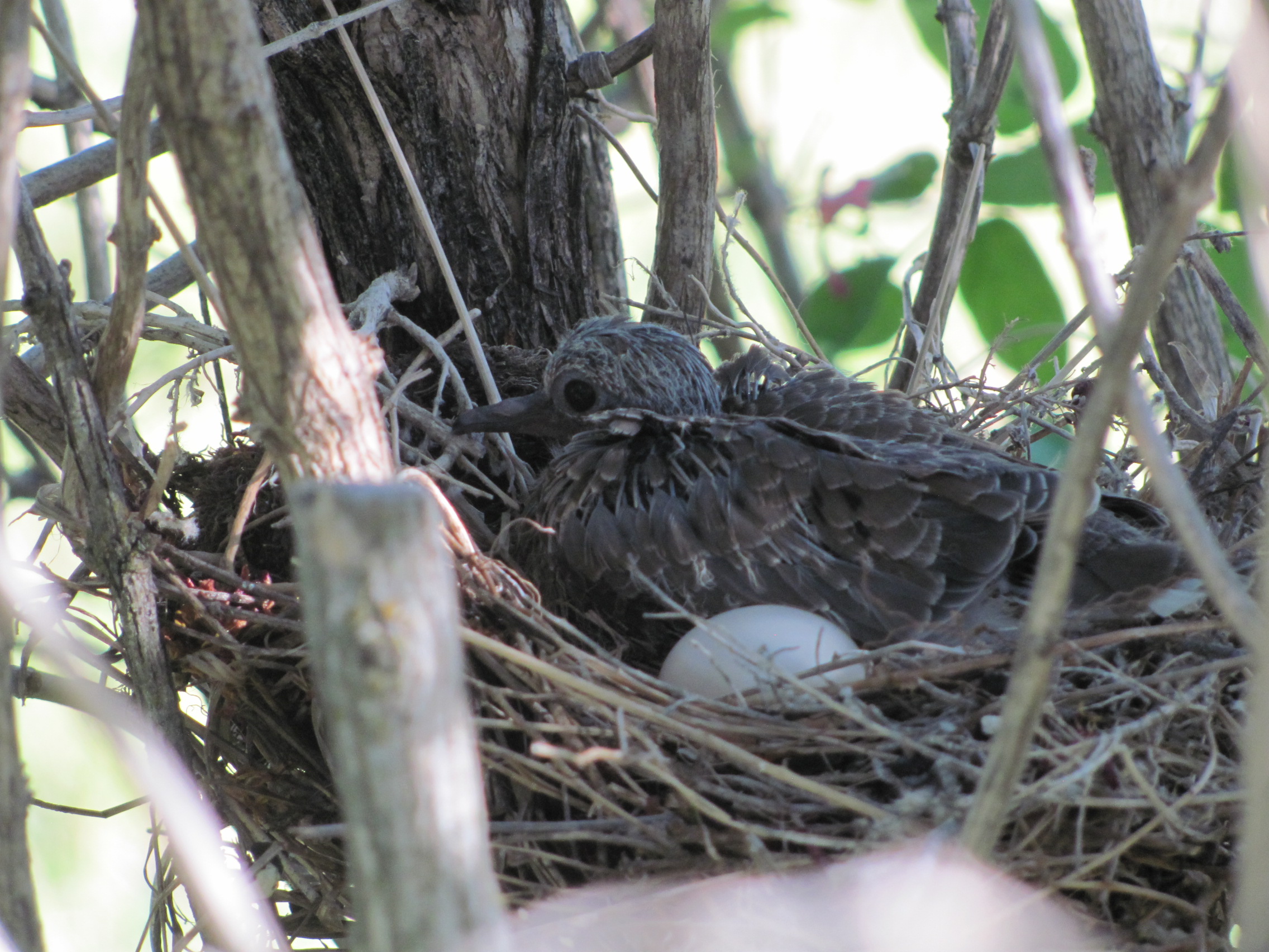 Babies. This little dove is in a nest in my honeysuckle hedge.