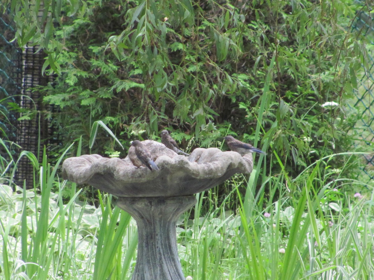 and unless I am mistaken mama bluebird took the babies out to have a bath, there were at least 3 in there, but hard to tell, there was so much splashing, I was laughing so hard it was difficult to take a good picture, it looked exactly like little kids in a kiddie pool..
