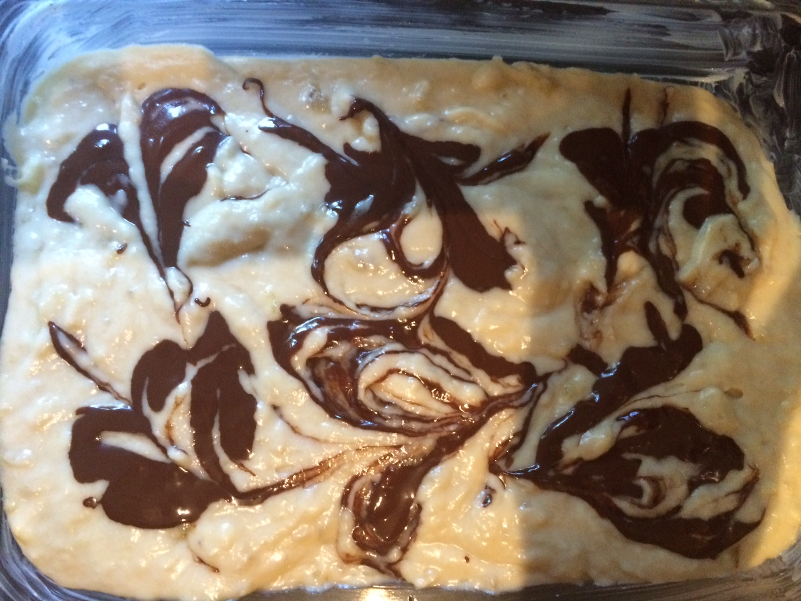 I made banana chocolate swirl cake today. Does that compare? Haha! Just kidding. (unbaked)