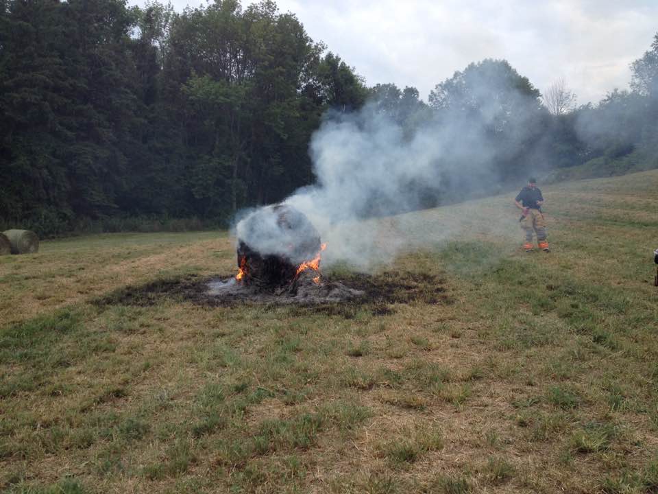 The firefighters hosed the bale down, and left. It was kind of like old home week... we knew most of the fire team. AND one of them bought beef from us, and I had been by his place 3 flipping times and forgot to take his bill along to drop it off!! So, got paid right then and there, lol.