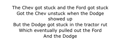 Hahaha! That song plays in my head every time I gun the jeep through the wet clay ruts of my old laneway!