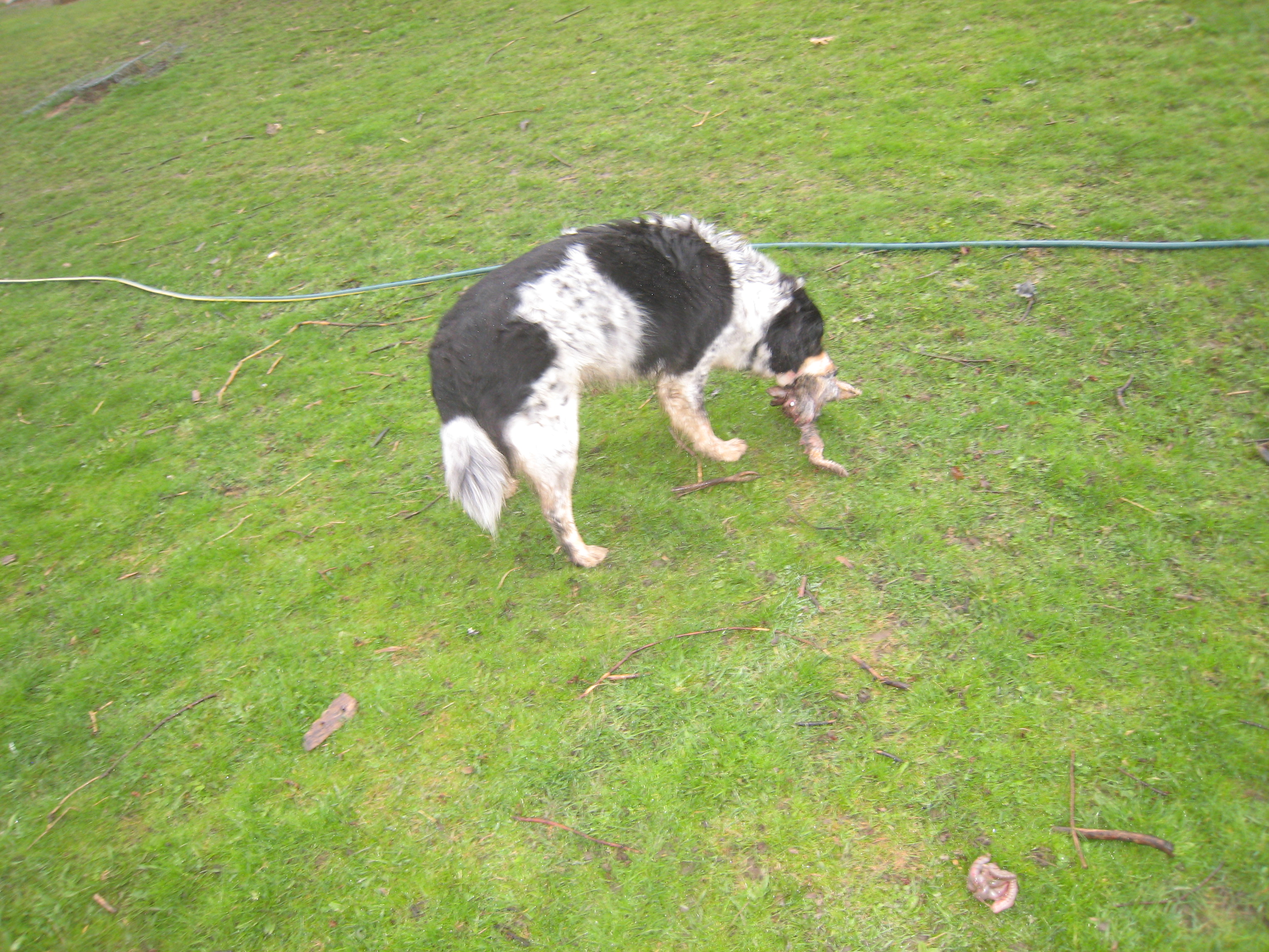 Ranger caught a bunny this morning, he is thrilled. The garden has chain link due to goats and dogs and the boys were making a huge fuss and I saw the bunny in there. So I opened the gate and they ran it to ground. He has no killer instinct tho, and he brought it to me and I had to wack it with a stick, but he is very proud. Hope the other bunnies take notice, that thats not a good place to go.