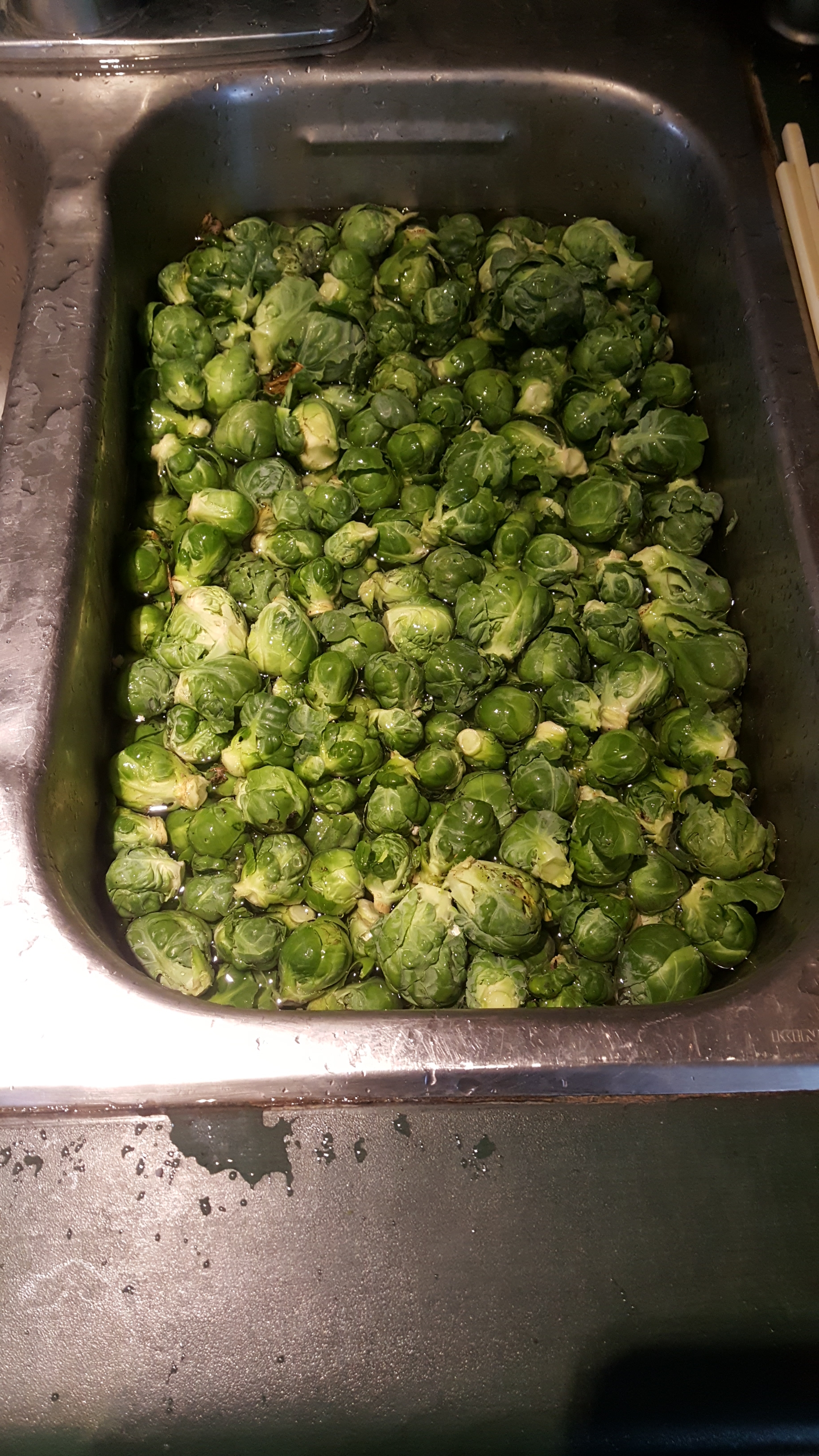 Frost last night here so dug the sweet potatoes-got a few nice ones but something had already dug up the plants!! Probably a skunk or coon. Then pcked peppers and basil...going out for sage shortly. Bussel sprouts are almost ready. Picked 5 plants...