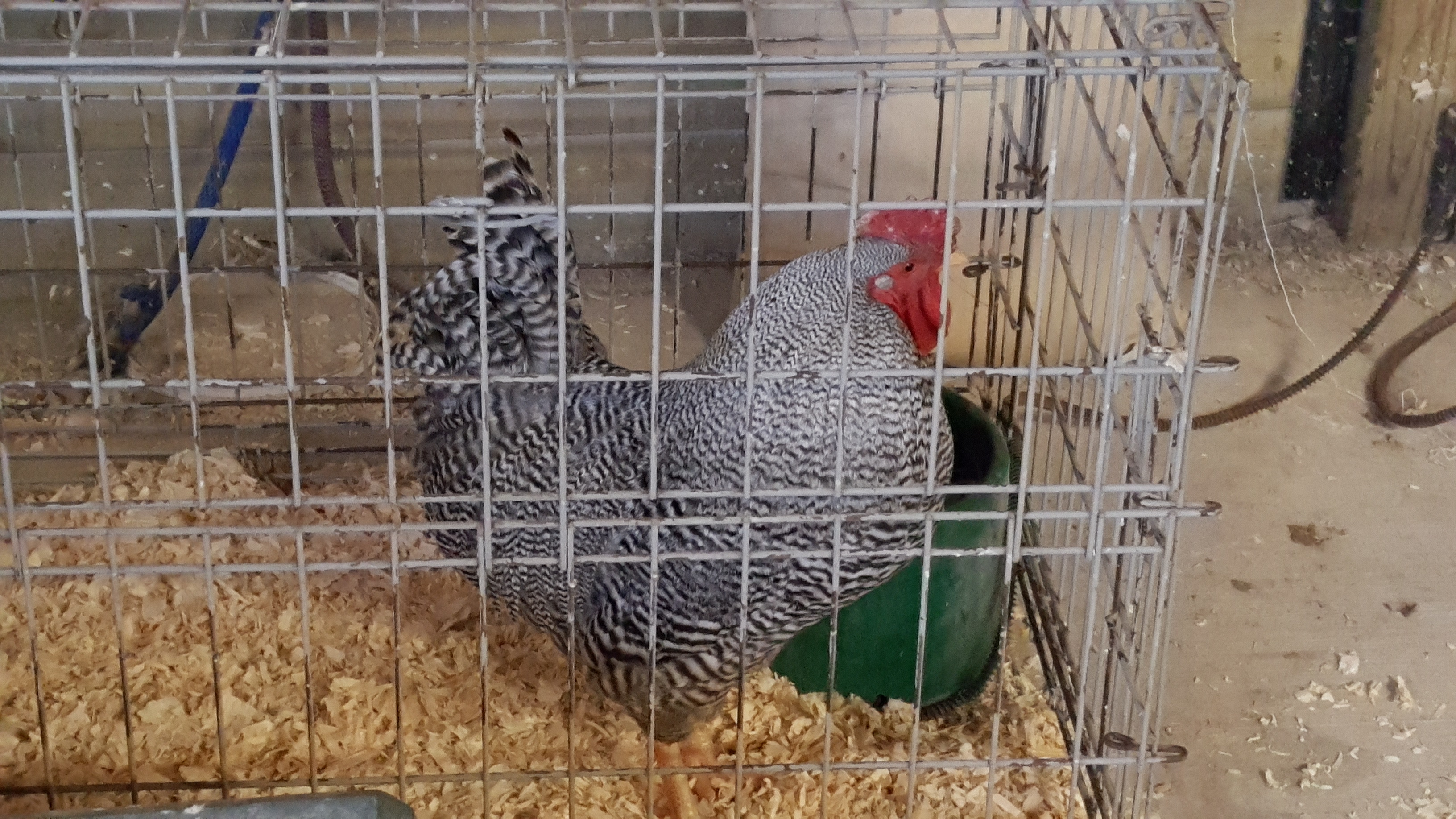 Fixed up my breeding pens and got a new to me barred rock boy. He spent a bit of time in quarantine and just met with his new harem today. He was already trying to scoop them up within 5 mins. Has a bit of winter frost bite but seems like a respecatble production barred rock which is what i was looking for. Old boy is outside with 10 cull girls...including 2 egg eaters....argh. the change in location threw them...i got 10 eggs from the group today lol.