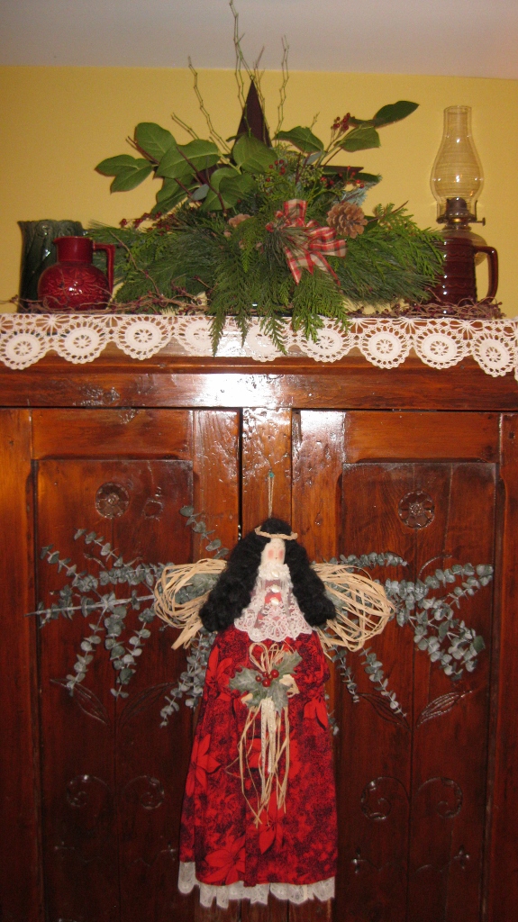 After my sister-in-law passed (10 years ago) my other sister-in-law took some of her dresses and each made us doll angels. She gave then to each of her siblings the Christmas after she passed as it was her favorite time of year. Our's is Christmas oriented and love getting her out each Christmas.