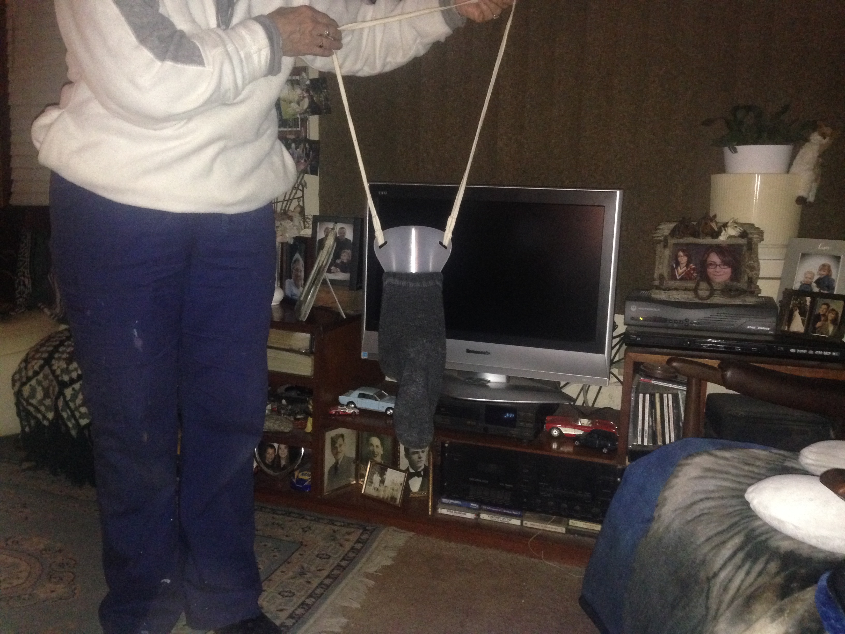 Great guys , if I'm taking socks off I use the pick me up gator mouth thing . A metal flat BBQ hamburger flipper duck taped to a broom handle & reshaped a bit works great for scoopin up cell phones etc . Luck