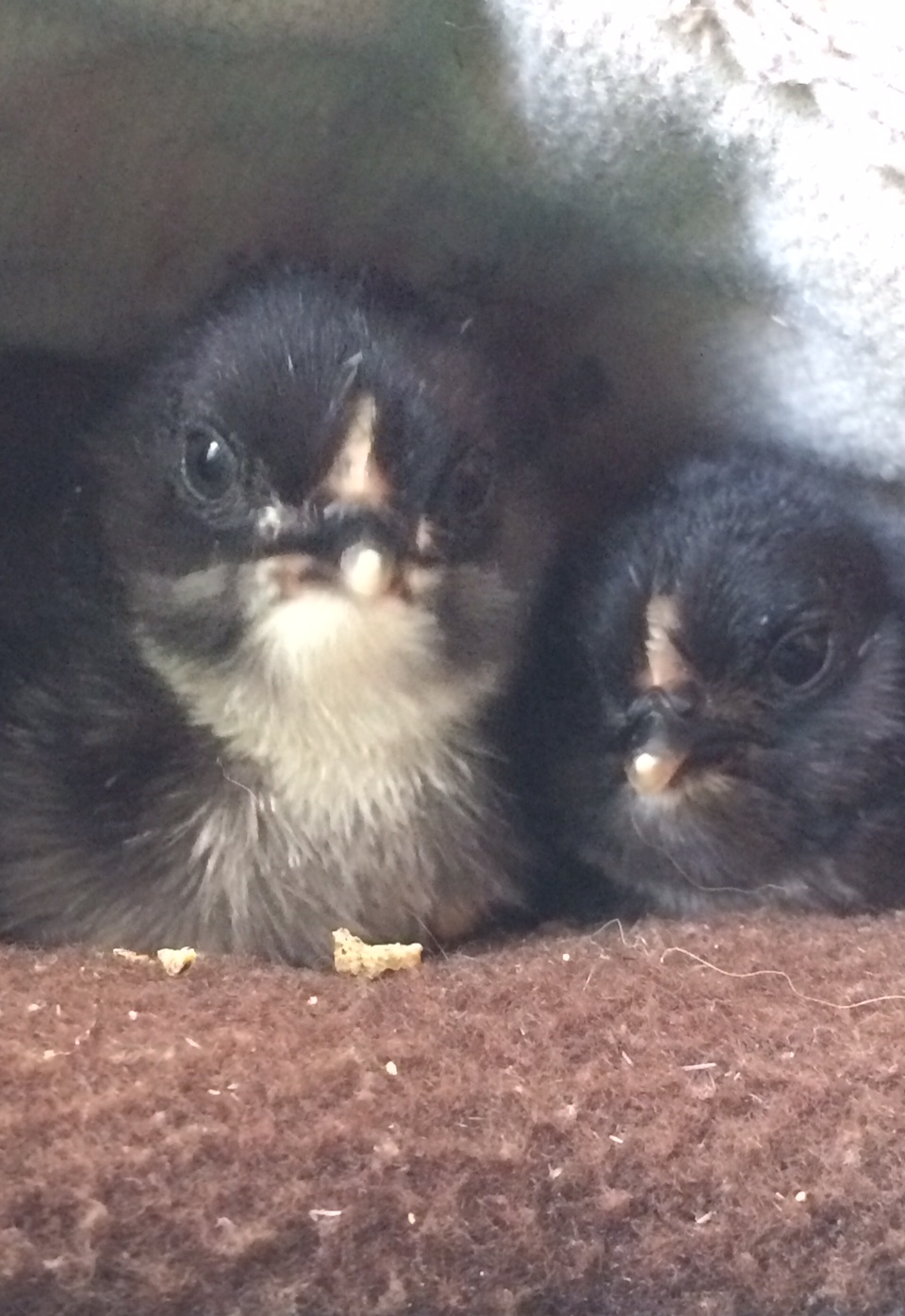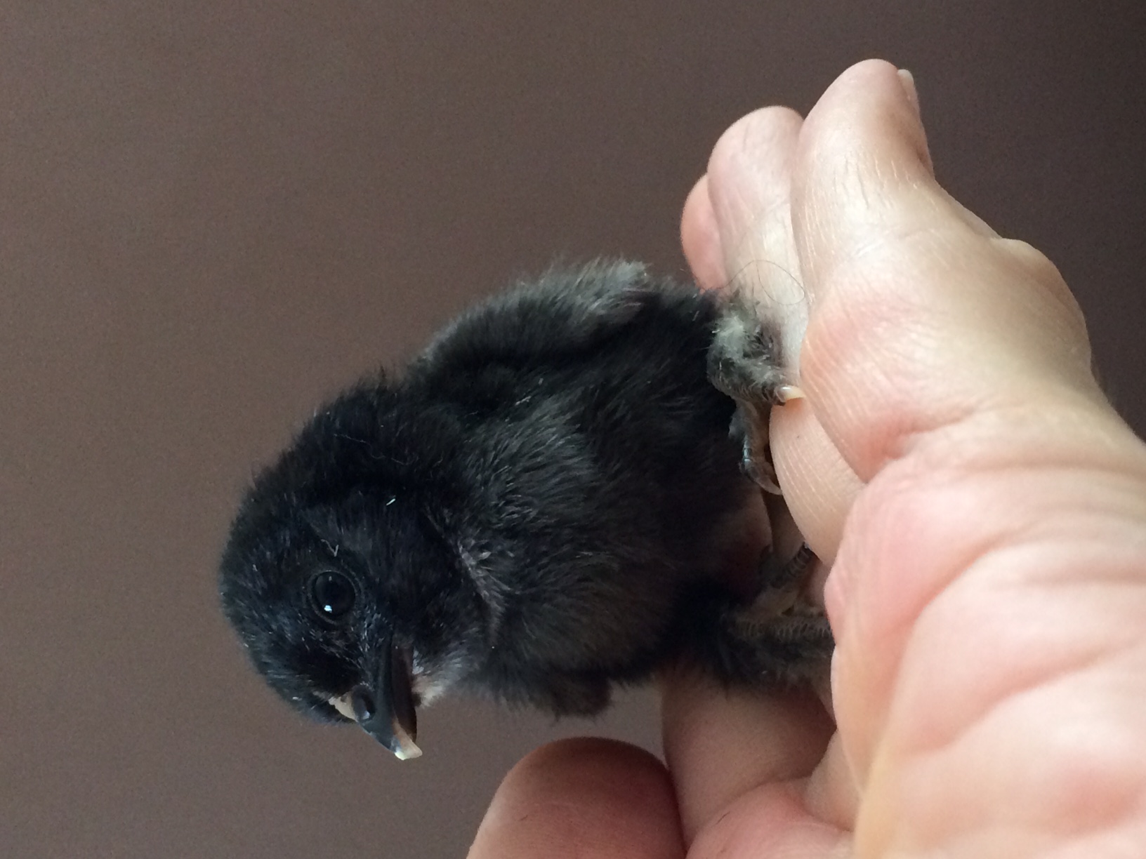 One teeny tiny black duccle popped out already which really surprised me. They are eggs from my brother's chickens and I thought they were all mille fleur but now I remember a tiny little black one giving me the stink eye in their brooder last year.